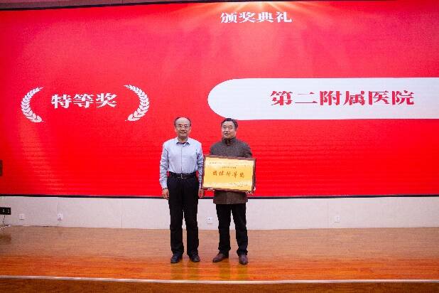 闭幕式由临床与基础医学院(基础医学研究所)党委书记张海东主持。总裁判长汪翼对比赛过程进行了点评,指出选手存在问题和不足,并给予相应的建议和意见,希望校(院)将比赛越办越好。临床与基础医学院(基础医学研究所)副院(所)长王尧宣读了比赛成绩。随后由参会嘉宾为20个单项奖获奖选手和获得特等奖、一等奖、二等奖和三等奖的团体颁奖。
