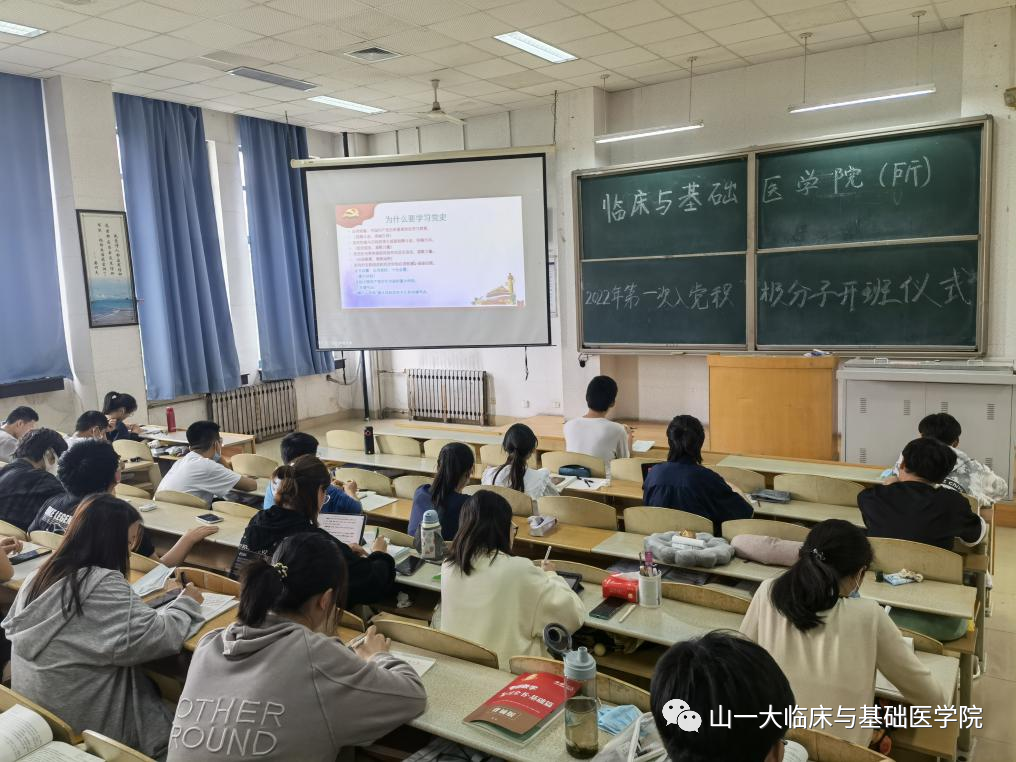 为进一步做好入党前教育培训工作,切实加强入党积极分子的培养教育,确保党员发展质量,2022年4月22日,临床与基础医学院(基础医学研究所)通过线上线下相结合的方式举行2022年第一期入党积极分子培训班开班仪式。院(所)党委书记孟庆建、党委副书记张乃强及全体辅导员和五百余名入党积极分子参加培训。