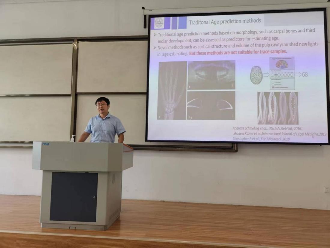 在活动中,院(所)青年骨干人才、病理学与法医学系教授--方晨博士应邀做了题为“医路领航—法医学研究进展”的报告。方博士以疑难案件为例,从piRNA组、miRNA组、基因组和表观遗传学等多组学高通量测序和分析方法来研究法医痕量物证;从筛选年龄、地域等个体特征相关基因位点并应用机器学习方法来研发个体特征刻画模型等方面,让大家对法医学的产生和发展有了初步的认识和了解。方博士生动的讲解极大的激发了同学们对法医专业的兴趣与学习动力,得到同学们和支部全体党员的高度评价。