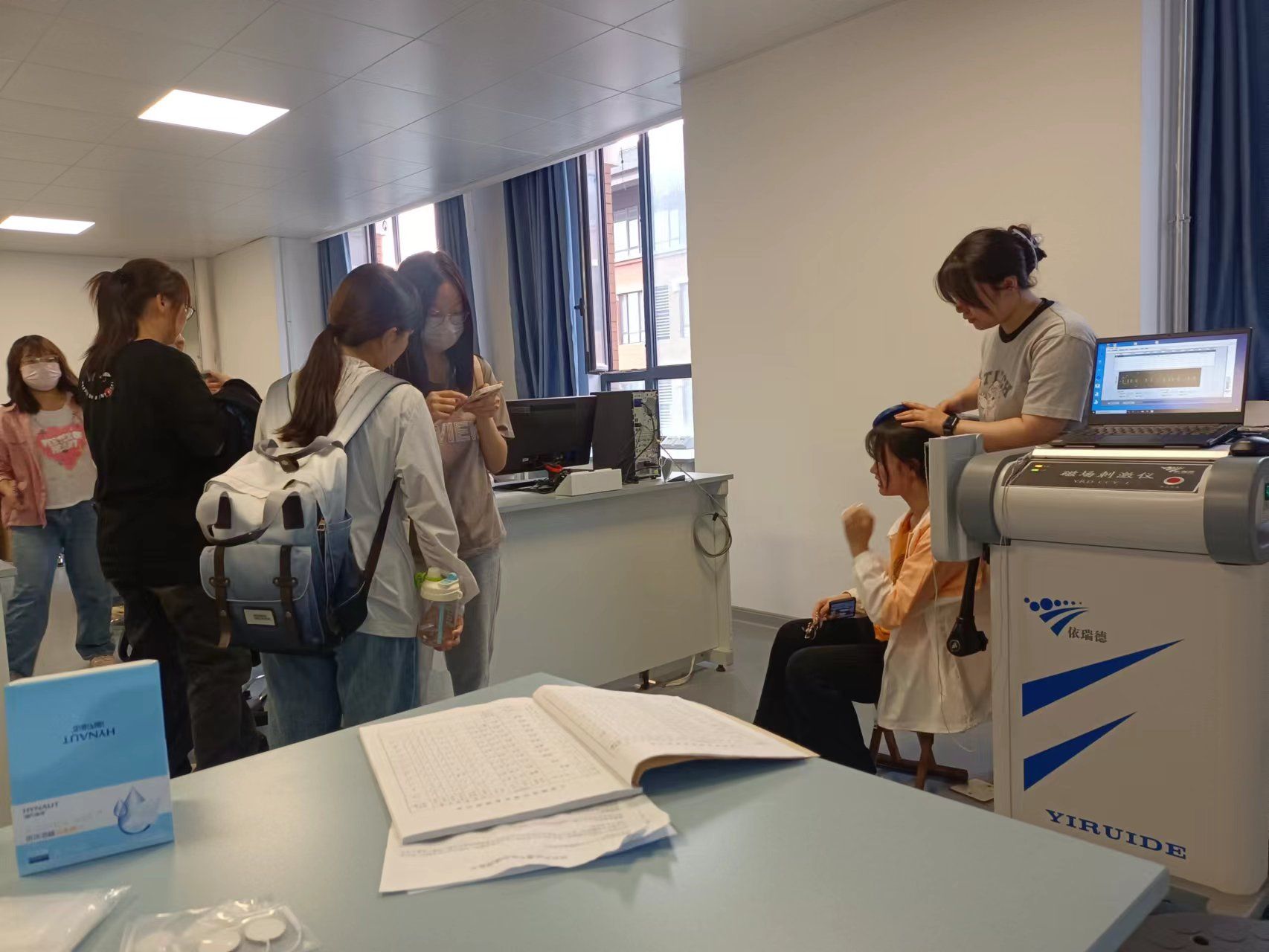 5月25日,是全国大学生心理健康日,“5·25”谐音“我爱我”,旨在提醒大学生关爱自我的心理成长和健康。本次活动以心理学实验为主线,为学生们开设了心理健康测试、智力测验、经颅磁刺激仪三个方面的体验活动。参与心理测验的同学可以根据自己的兴趣选择量表在线测试,并由专业人员给出得分解读和专业建议。同学们还体验了经颅磁刺激仪,这是一种利用磁场,对大脑皮层或外周神经进行一种非侵入式的、无疼痛的刺激,从而检测或调节改善大脑功能的技术,通过体验,同学们对这一临床常用的精神疾病治疗技术有了更加直观的了解。