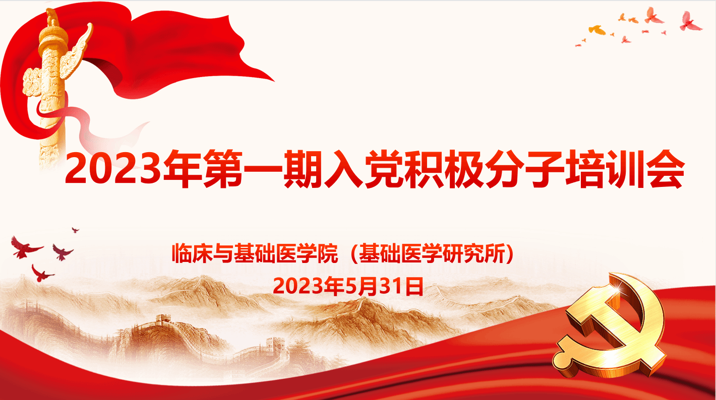 为深入开展学习贯彻习近平新时代中国特色社会主义思想主题教育,进一步做好入党前教育培训工作,切实提高党员发展质量,2023年5月31日,临床与基础医学院(基础医学研究所)举办了2023年第一期入党积极分子培训班,院(所)2021级、2022级五百余名入党积极分子参加培训。