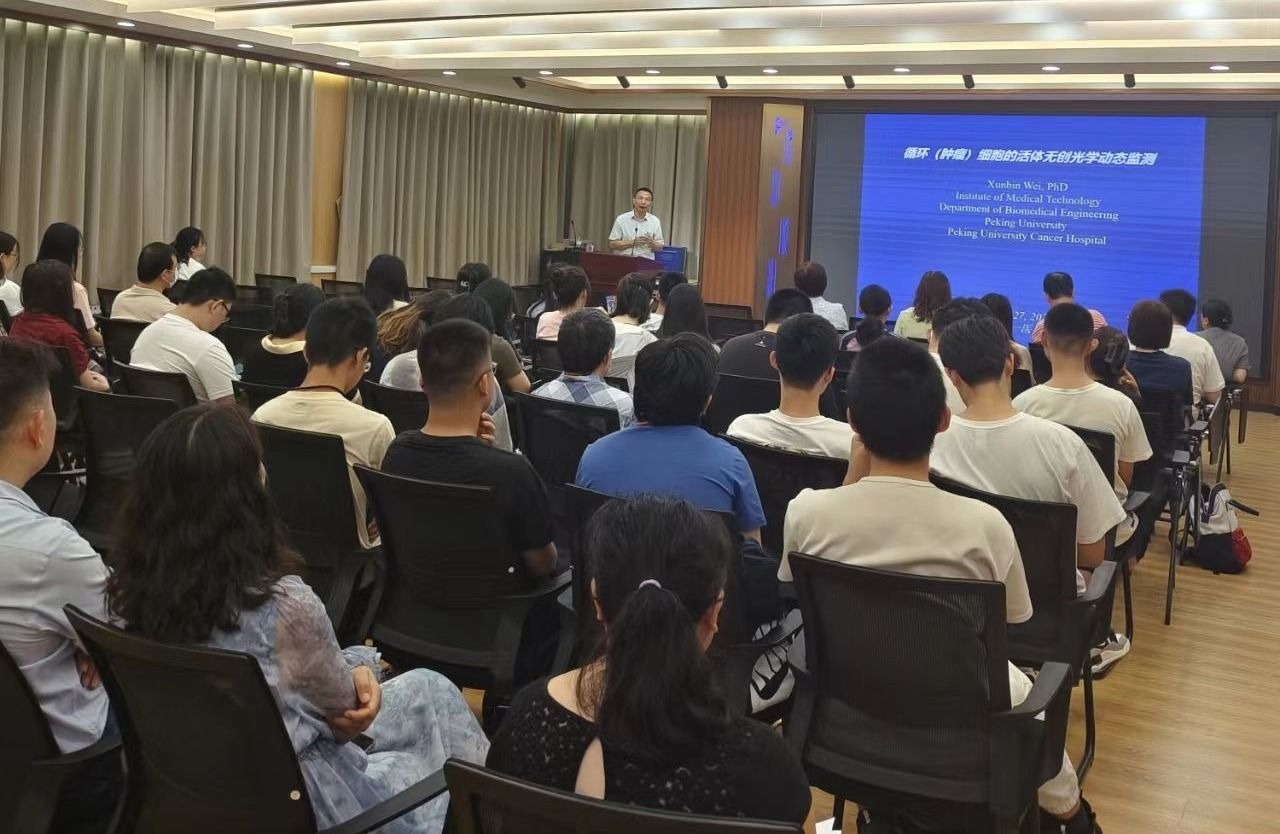 活动中,魏勋斌教授做了题为“循环(肿瘤)细胞的活体无创光学动态监测”的讲座,从职业生涯规划、价值引领、科研经验三方面深入浅出地为大家讲述了他的科研经历。“奔赴自己热爱的,专攻自己擅长的,幸福人生如此耳”,“同学们是行医的救命人,万万丢不得初心和仁心”,魏教授字字珠玑,阐己初心,由此开篇了新技术的产生背景和初心,并积极与参会者互动,头脑风暴碰撞在会场,期许嘱托寄送在言语。
