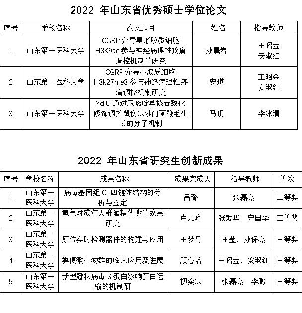 临床与基础医学院2022年度山东省研究生科技创新成果获奖情况通报
