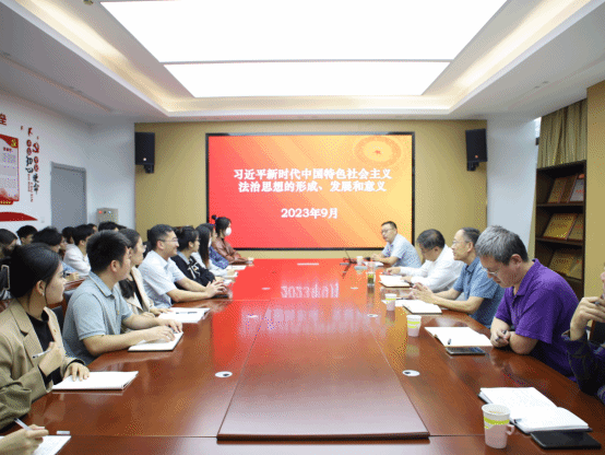 座谈会上,首先,由党支部书记任志国介绍了校(院)近期取得的多项发展成果与提升,并对同学们寄予厚望,希望他们能够努力为校(院)发展建设添砖加瓦。然后,由杨晨光同志围绕“习近平法治思想的形成和确立”“习近平法治思想的主要内容”“习近平法治思想的鲜明特征”以及“习近平法治思想的重大意义”等四个方面,并结合习近平总书记关于法治思想重要论述,引经据典,结合时事,层层深入地对习近平法治思想作了全面系统地解读。