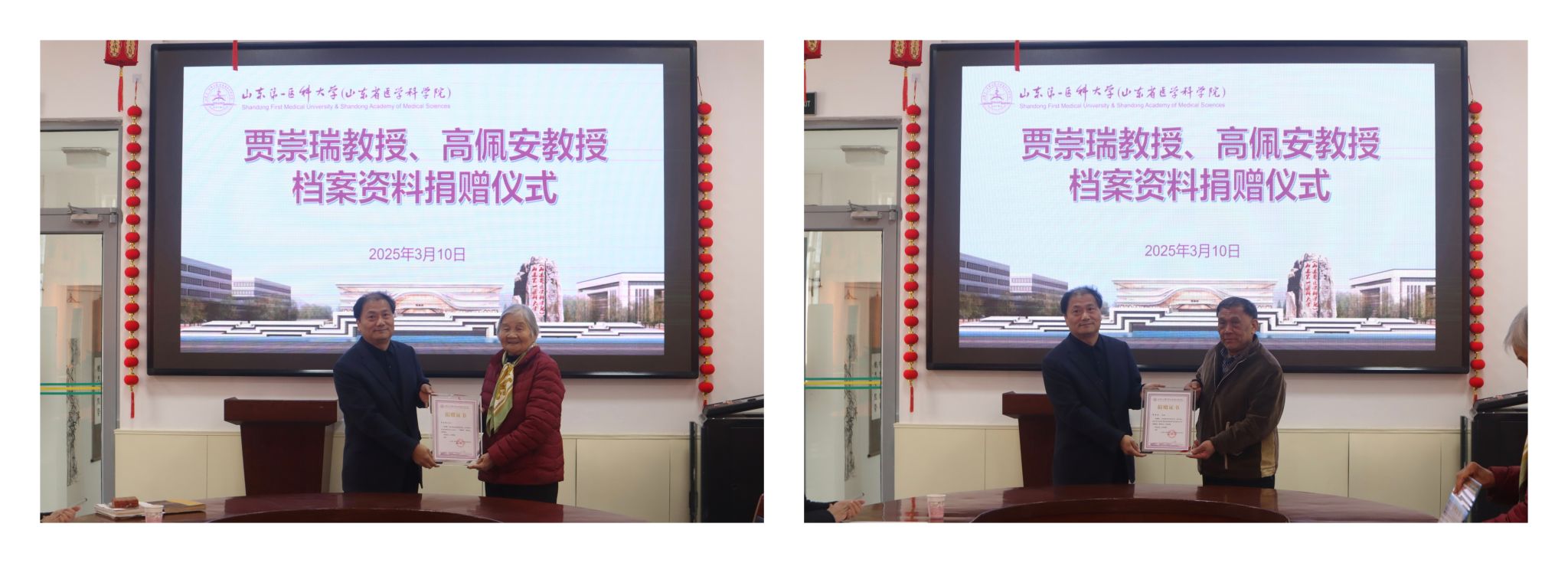 3月10日上午,贾崇瑞教授、高佩安教授个人档案资料捐赠仪式在泰安天外村校区离退休工作部会议室举行。原泰山医学院党委书记贾崇瑞教授、原泰山医学院公共卫生学院院长高佩安教授出席活动。