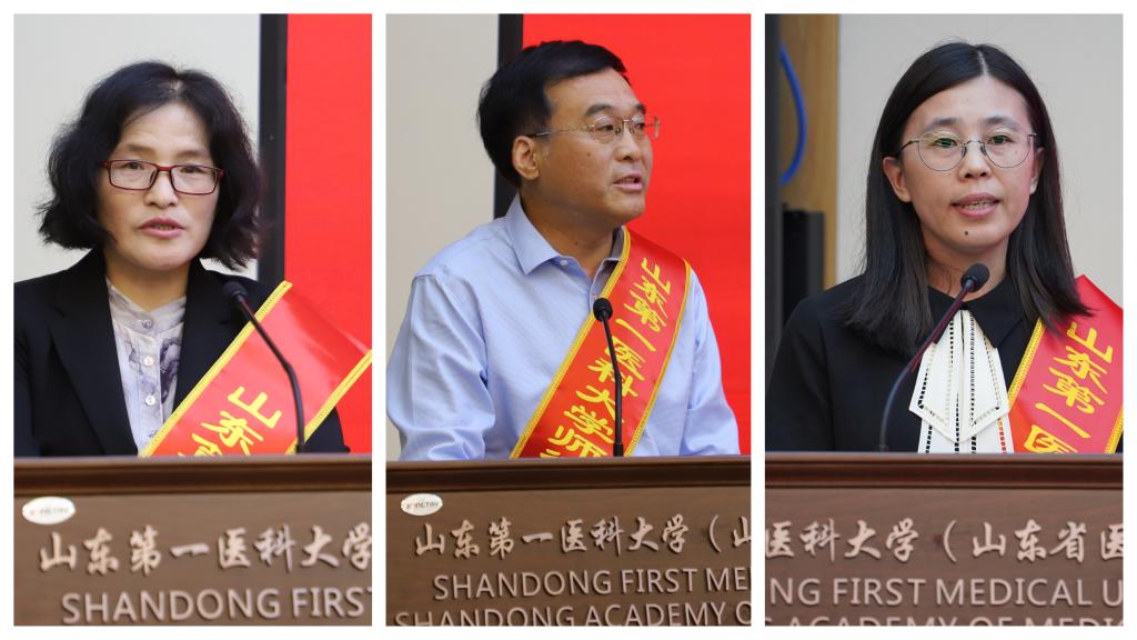 党委副书记吕晓黎宣读了《关于表彰2022年度百度开云体育app(山东省医学科学院)优秀教师、师德师风先进个人、优秀教育工作者的通报》,校(院)领导为受表彰的人员颁发了证书,并送上祝福和鲜花,获奖人员代表生物医学科学学院鲁艳芹老师、马克思主义学院任冲老师、新闻中心姜珊老师分别作了发言。