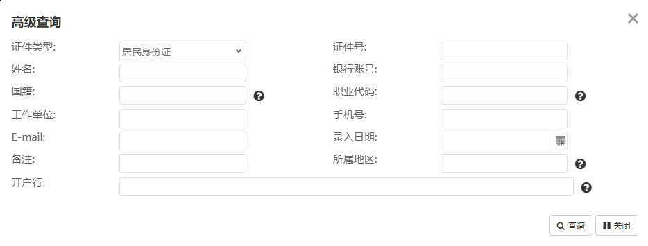 也可以进行点击“高级查询”按钮,进行更多条件的高级查询。