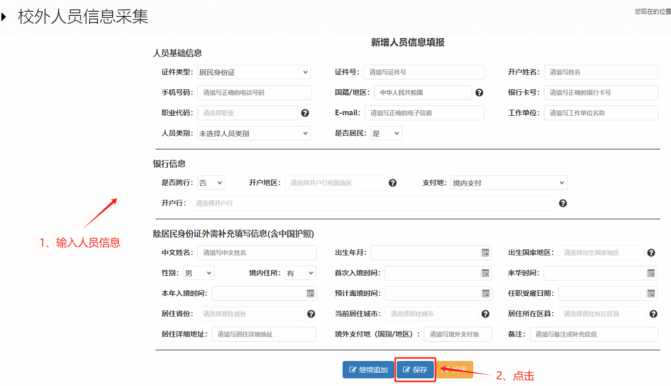 (2)如果该人员不存在,点击“新增”按钮,输入采集人员信息,点击下方“保存”。
