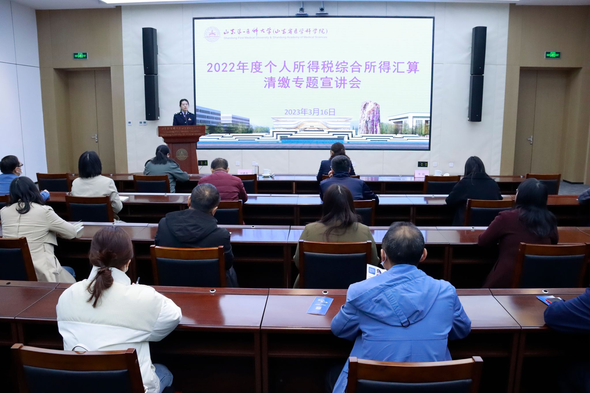 3月16午,校(院)组织召开2022年度个人所得税综合所得汇算清缴专题宣讲会,邀请国家税务总局泰安高新技术产业开发区税务局以下简称泰安高新税务局)就“个人所得税综合所得年度汇算清缴业务”进行专题政策讲解会议由计划财务部副部长艾琦主持