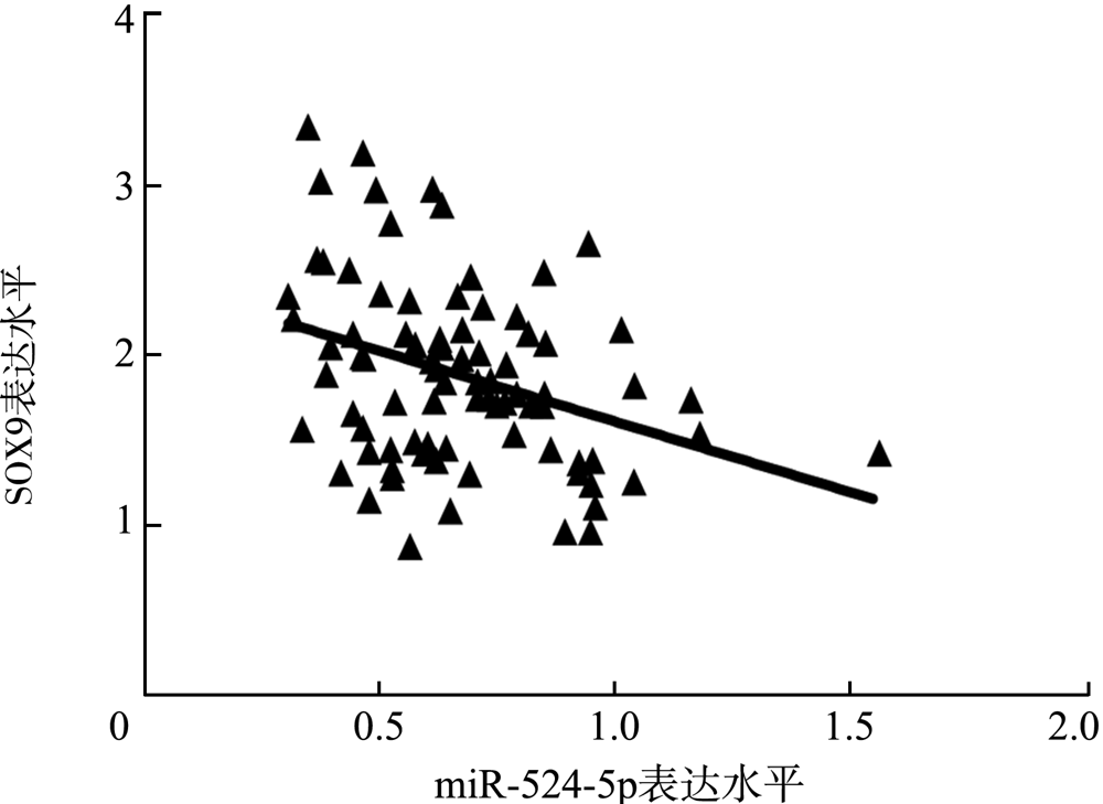 目的研究晚期胃癌中miR-524-5p与性别决定区Y框蛋白9(SOX9)表达的相关性及其对化疗疗效和预后的影响。方法选择2015年1月至2017年12月在中国人民解放军联勤保障部队第九一〇医院诊断为晚期胃癌并接受DCF(多西他赛+顺铂+氟尿嘧啶)方案化疗的82例患者作为研究对象,采用荧光定量PCR法检测胃癌组织中miR-524-5p、SOX9的表达水平,分析miR-524-5p与SOX9表达的相关性,比较不同miR-524-5p、SOX9表达水平患者化疗总有效率,分析miR-524-5p联合SOX9对化疗疗效的预测价值,分析患者的总生存期(OS)及无进展生存期(PFS)。结果miR-524-5p、SOX9的表达与晚期胃癌患者的性别、年龄无关(均P>0.05),与晚期胃癌患者的分化程度(χ2=3.577,P=0.001;χ2=5.654,P<0.001)、远处转移(χ2=2.466,P=0.016;χ2=5.218,P<0.001)有关。晚期胃癌中miR-524-5p与SOX9的表达呈负相关(r=-0.348,P=0.001)。根据胃癌组织miR-524-5p、SOX9表达中位数分为高表达与低表达患者,miR-524-5p≥0.64为高表达(n=41),<0.64为低表达(n=41);SOX9≥1.84为高表达(n=41),<1.84为低表达(n=41)。miR-524-5p高表达晚期胃癌患者的总有效率58.54%(24/41)高于miR-524-5p低表达患者的24.39%(10/41),差异有统计学意义(χ2=9.484,P=0.002);SOX9高表达晚期胃癌患者的总有效率21.95%(9/41),低于SOX9低表达患者的60.98%(25/41),差异有统计学意义(χ2=12.863,P<0.001)。受试者工作特征曲线分析显示,miR-524-5p和SOX9的表达对化疗疗效具有预测价值,曲线下面积分别为0.753(95%CI为0.6440.861,P<0.001)和0.660(95%CI为0.5400.780,P=0.014)。miR-524-5p联合SOX9对化疗疗效具有预测价值,曲线下面积为0.768(95%CI为0.6670.868,P<0.001)。miR-524-5p高表达晚期胃癌患者的中位PFS为8个月,中位OS为14个月,均长于miR-524-5p低表达患者(6个月、9个月),差异均有统计学意义(χ2=21.160,P<0.001;χ2=29.730,P<0.001);SOX9高表达晚期胃癌患者的中位PFS为7个月,中位OS为10个月,均短于SOX9低表达患者(8个月、12个月),差异均有统计学意义(χ2=6.345,P=0.012;χ2=4.107,P=0.043)。结论晚期胃癌组织中miR-524-5p与SOX9的表达呈负相关,miR-524-5p高表达、SOX9低表达的患者化疗疗效及预后均优于miR-524-5p低表达、SOX9高表达的患者。