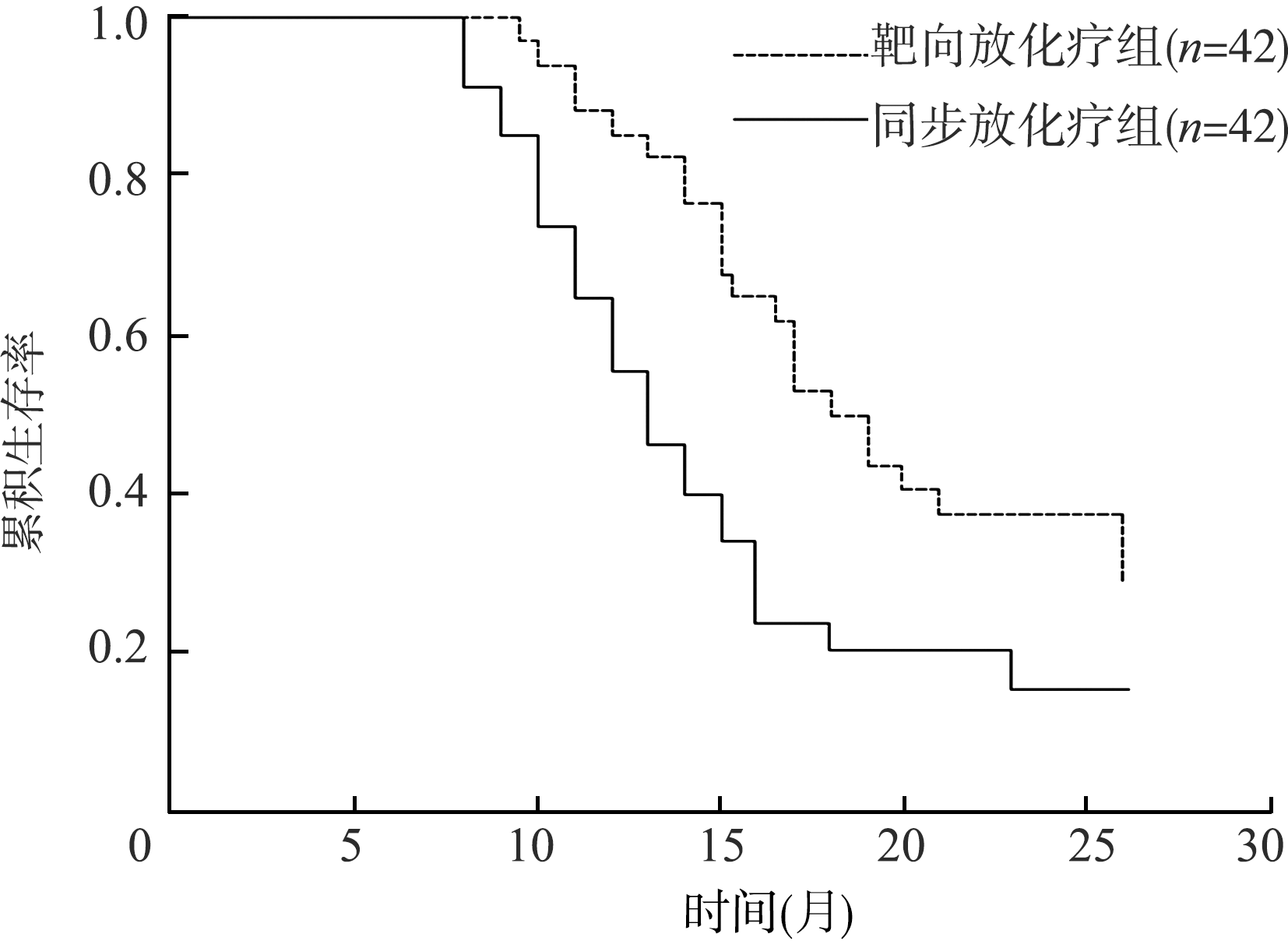 | 靶向放化疗组(n=42) | 56.66±10.28 | 16.27±2.13a | 47.12±5.88 | 13.25±2.26a | 16.78±2.12 | 2.97±0.85a |