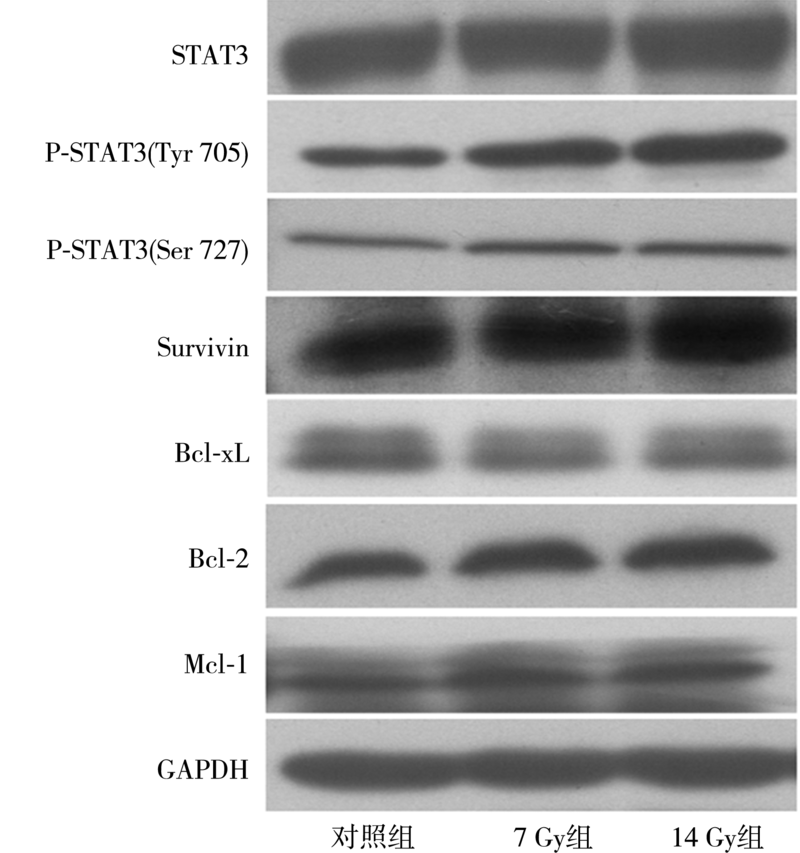 ObjectiveTo investigate the biological characteristics of proliferation, apoptosis, migration and invasion of radiation-induced polyploid cervical cancer HeLa cells, and to analyze the potential facilitation of polyploid HeLa cells in cervical cancer recurrence after radiotherapy.MethodsHeLa cells were irradiated by 6 MV-X ray with 7 Gy and 14 Gy, the cells were cultured until the third day, and then they were recorded as 7 Gy group and 14 Gy group respectively. The unirradiated HeLa cells were recognized as the control group. The cell morphology was checked under optical microscope. Flow cytometry was used to determine cell ploidy. MTT assay was applied to detect cell proliferation. Flow cytometry by AnnexinⅤ-FITC/PI double labeling was used to detect apoptosis. The ability of migration and invasion was detected by Transwell assay. The expression levels of STAT3 signal pathway-related proteins were analyzed by Western blotting.ResultsCompared with the control group, the volume of HeLa cells in 7 Gy group and 14 Gy group increased significantly. The percentages of polyploid HeLa cell subsets in the control group, 7 Gy group and 14 Gy group were (6.33±1.26)%, (21.13±0.50)% and (46.07±1.68)% respectively, with a statistically significant difference (F=780.47,P<0.001). The absorbance values in the control group, 7 Gy group and 14 Gy group of polyploidy HeLa cells were 0.21±0.01, 0.23±0.02, 0.16±0.01 at 24 h, 0.37±0.03, 0.38±0.06, 0.21±0.00 at 48 h, 0.66±0.02, 0.55±0.01, 0.28±0.01 at 72 h, and there were statistically significant differences (F=31.62,P=0.001;F=20.10,P=0.002;F=708.52,P<0.001). Further pairwise comparison showed that the proliferation abilities of polyploidy HeLa cells of the 14 Gy group at 24, 48 and 72 h were significantly lower than those of the control group and the 7 Gy group (allP<0.05). The proportions of apoptotic cell subset in the control group, 7 Gy group and 14 Gy group were (3.67±1.16)%, (3.07±0.81)%, (3.83±0.91)%, the proportions of early apoptotic subset were (2.33±0.35)%, (2.13±0.61)%, (2.23±0.32)%, and the proportions of late apoptotic subset were (1.33±0.81)%, (0.93±0.31)%, (1.60±0.60)% respectively. There were no statistically significant differences (F=0.52,P=0.620;F=0.15,P=0.864;F=0.92,P=0.450). The migrated numbers of cells in the control group, 7 Gy group and 14 Gy group were 297.40±26.53, 121.33±15.16, 18.40±4.79, and the invaded numbers were 195.67±20.26, 63.60±6.91, 9.47±3.23 respectively, with statistically significant differences (F=647.28,P<0.001;F=213.94,P<0.001). Compared with the control group, the migration and invasion abilities of polyploid HeLa cells in the 7 Gy and the 14 Gy groups were significantly decreased, and the migration and invasion abilities of polyploid HeLa cells in the 14 Gy group were significantly lower than those in the 7 Gy group (allP<0.001). The expression levels of P-STAT3 (Tyr 705) and Bcl-2 in radiation-induced polyploidy HeLa cells were higher than those in the control group, and the expression levels were further increased with the increase of radiation dose. Compared with the control group, the expression levels of Survivin and Mcl-1 in polyploid HeLa cells in the 14 Gy group were up-regulated (bothP<0.05). There was no significant difference in Bcl-xL expression among the three groups (F=0.52,P=0.618).ConclusionThe proliferation, migration and invasion abilities of polyploid HeLa cells are reduced by radiation, and the proportion of apoptotic subset is not significantly changed, but the activation of STAT3 signaling pathway is accompanied by up-regulation of downstream anti-apoptotic related proteins, which is favorable for the polyploid tumor cells to be the potential risk factor of recurrent cervical cancer after radiotherapy.