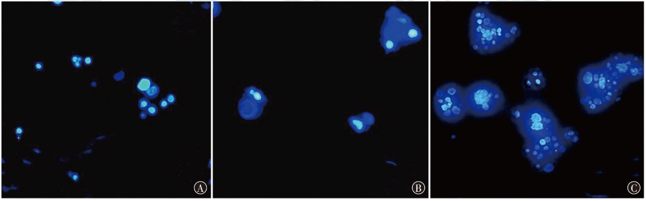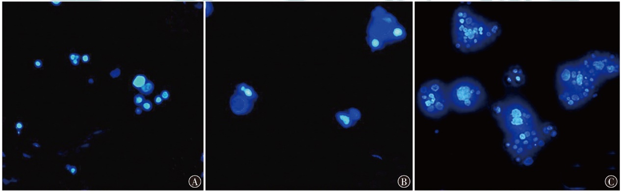 Abstract: Objective To explore the effects of miR-451 on glycolysis and apoptosis of breast cancer cells by regulating the Rho/ROCK1 pathway. Methods Breast cancer MCF7 cells were divided into breast cancer cells (BC) group, breast cancer cells + miR-451-NC (MN) group, breast cancer cells + miR-451 inhibitor (MI) group, breast cancer cells + miR-451 mimic (MM) group, breast cancer cells + lysophosphatidic acid (BL) group, breast cancer cells + fasudil (BF) group, and breast cancer cells + miR-451 mimic + fasudil (MF) group. Glucose uptake detection kit and lactate detection kit were used to detect cell glycolysis, DAPI staining was used to detect cell apoptosis, Western blotting was used to detect Rho/ROCK1 pathway protein expression, and double luciferase reporting assay was used to confirm the interaction between miR-451 and Rho/ROCK1. Results The glucose intake of cells in the BC group, MN group, MI group and MM group were (14.22±2.36)×105 mg/h, (14.20±2.37)×105 mg/h, (21.55±2.43)×105 mg/h, (6.19±1.34)×105 mg/h (F=5.30, P<0.001), respectively, and lactic acid production were (1.52±0.21)×105 μg/h, (1.53±0.22)×105 μg/h, (2.05±0.32)×105 μg/h, (0.54±0.12)×105 μg/h (F=3.28, P=0.008), respectively. The apoptosis rates were (10.13±1.35)%, (10.16±1.37)%, (5.36±1.24)%, (28.47±2.56)% (F=6.36, P<0.001), respectively. The expressions of Rho protein were 2.31±0.46, 2.32±0.41, 2.95±0.35, 1.05±0.25 (F=2.86, P=0.017), respectively. The expressions of ROCK1 protein were 2.51±0.41, 2.52±0.42, 3.05±0.33, 1.15±0.13 (F=2.43, P=0.035), and there were statistically significant differences between the MN and MI groups, MN and MM groups, MI and MM groups (all P<0.05). The glucose intake in the BC group, BL group and BF group were (14.22±2.36)×105 mg/h, (21.54±2.40)×105 mg/h, (6.20±1.35)×105 mg/h (F=5.33, P<0.001), respectively. Lactic acid production were (1.52±0.21)×105 μg/h, (2.01±0.30)×105 μg/h, (0.55±0.12)×105 μg/h (F=3.28, P=0.008), respectively. The apoptosis rates were (10.13±1.35)%, (5.34±1.22)%, (28.44±2.54)% (F=6.45, P<0.001). The expressions of Rho protein were 2.31±0.46, 2.94±0.45, 1.01±0.24 (F=2.40, P=0.037), respectively, and the expressions of ROCK1 protein were 2.51±0.41, 3.08±0.42 and 1.13±0.12, respectively (F=2.38, P=0.039). The pairwise comparisons among the three groups were statistically significant (all P<0.05). In the MF group, glucose intake was (3.21±0.89)×105 mg/h, lactic acid production was (0.33±0.04)×105 μg/h, apoptosis rate was (38.01±2.87)%, Rho protein expression was 0.55±0.14, and ROCK1 protein expression was 0.51±0.10. There were statistically significant differences among the MM group, BF group and MF group (F=4.53, P=0.001; F=4.26, P=0.002; F=6.12, P<0.001; F=4.06, P=0.002; F=9.72, P<0.001), and there were statistically significant differences between the MF group and BF group (all P<0.05). Dual luciferase report showed that miR-451 transfection significantly decreased the luciferase activity of ROCK1-3'-UTR-WT (0.59±0.03 vs. 1.01±0.05, t=17.64, P<0.001), but had no significant effect on mutated genes (1.01±0.07 vs. 1.02±0.04, t=0.30, P=0.767). Conclusion Overexpression of miR-451 can significantly inhibit glycolysis of breast cancer cells and promote apoptosis of breast cancer cells, the mechanism of which may be related to inhibition of Rho/ROCK1 pathway.