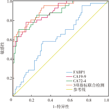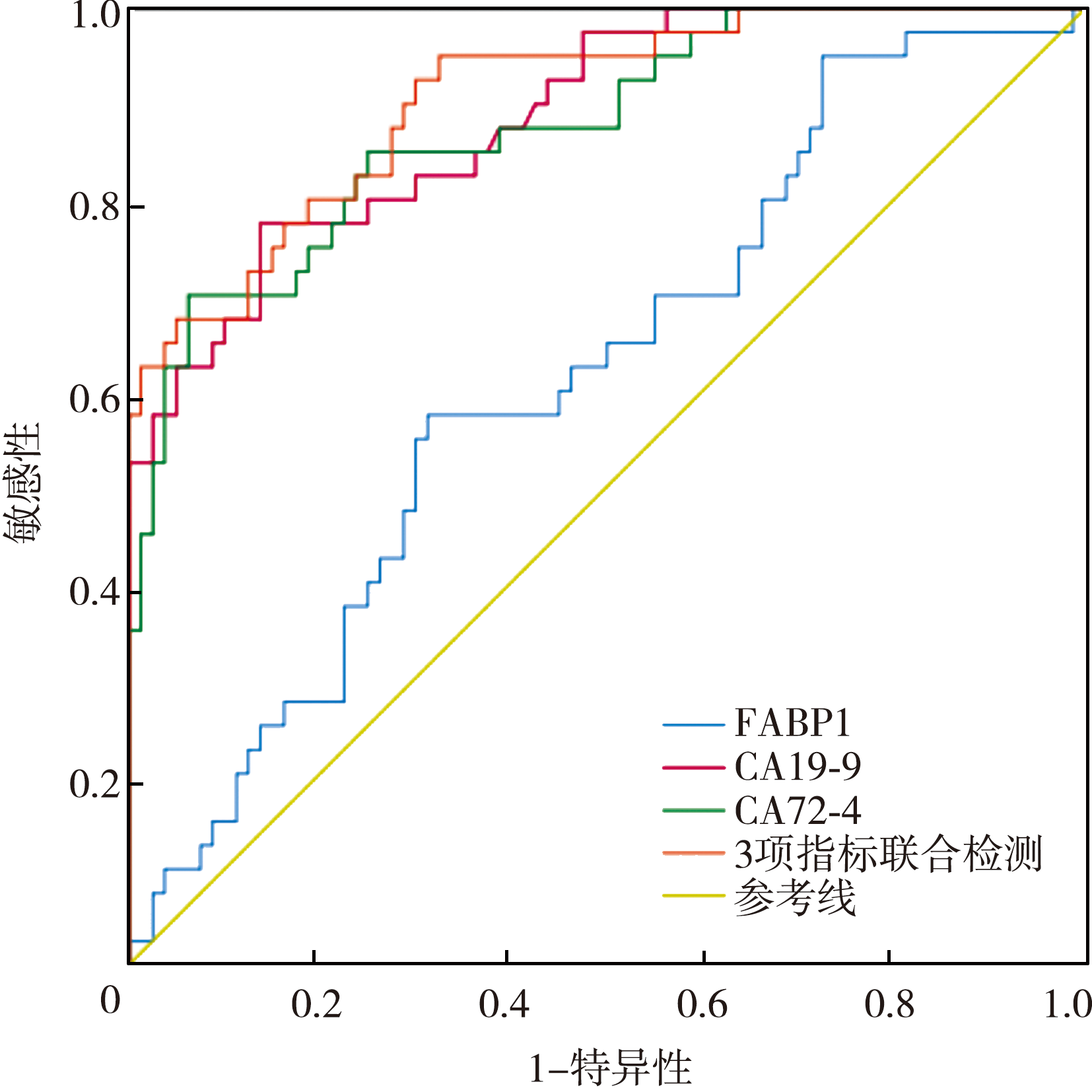目的探讨胃癌患者血清中脂肪酸结合蛋白1(FABP1)的水平及其与幽门螺杆菌(Hp)感染的关系。方法选取2021年8月至2022年8月青海大学附属医院收治的40例胃癌患者(胃癌组)作为研究对象,将同期的40例体检者作为对照组,40例慢性萎缩性胃炎患者作为CAG组。采用13C尿素呼气试验检测Hp感染情况,采用酶联免疫吸附试验检测血清FABP1的水平。分析3组研究对象Hp感染情况、血清FABP1的水平及两者间的关系,分析血清FABP1水平与胃癌患者临床病理特征的关系,采用受试者工作特征(ROC)曲线评估血清FABP1、CA19-9、CA72-4以及3项指标联合检测的诊断效能。结果对照组、CAG组、胃癌组Hp感染率分别为32.50%(13/40)、55.00%(22/40)、60.00%(24/40),差异有统计学意义(χ2=6.87,P=0.032)。其中,对照组与胃癌组相比,差异有统计学意义(P<0.05);CAG组分别与对照组、胃癌组相比,差异均无统计学意义(均P>0.05)。对照组、CAG组、胃癌组血清FABP1水平分别为[63.47(37.53,71.59)]ng/ml、[65.26(51.15,79.67)]ng/ml、[72.84(53.44,82.25)]ng/ml,差异有统计学意义(H=6.62,P=0.037)。其中,对照组与胃癌组相比,差异有统计学意义(H=19.93,P=0.031);CAG组分别与对照组、胃癌组相比,差异均无统计学意义(H=1.50,P=0.133;H=1.09,P=0.277)。全部研究对象中Hp阳性者(n=59)与Hp阴性者(n=61)血清FABP1水平分别为[77.05(68.90,83.54)]ng/ml、[47.80(37.76,63.32)]ng/ml,差异有统计学意义(Z=7.45,P<0.001);对照组Hp阳性和Hp阴性者血清FABP1水平分别为[77.34(68.84,86.31)]ng/ml、[39.79(36.83,63.75)]ng/ml,差异有统计学意义(Z=4.46,P<0.001);CAG组Hp阳性和Hp阴性者血清FABP1水平分别为[76.51(65.30,80.97)]ng/ml、[49.34(39.92,59.41)]ng/ml,差异有统计学意义(Z=4.32,P<0.001);胃癌组Hp阳性和Hp阴性者血清FABP1水平分别为[77.15(72.62,84.13)]ng/ml、[50.57(44.54,68.97)]ng/ml,差异有统计学意义(Z=4.32,P<0.001)。FABP1水平与胃癌患者吸烟(t=2.54,P=0.015)、肿瘤直径(t=2.23,P=0.035)、淋巴结转移(t=3.22,P=0.003)均有关,与性别(t=0.98,P=0.333)、年龄(t=1.60,P=0.117)、饮酒(Z=0.10,P=0.925)、肿瘤部位(F=1.06,P=0.356)、分化程度(t=0.61,P=0.545)、浸润深度(t=1.41,P=0.166)、远处转移(Z=1.96,P=0.050)以及TNM分期(Z=0.66,P=0.508)均无关。ROC曲线分析显示,血清FABP1诊断胃癌的曲线下面积(AUC)为0.62,95%CI为0.51~0.72,敏感性为57.50%,特异性为68.70%;血清CA19-9诊断胃癌的AUC为0.89,95%CI为0.83~0.95,敏感性为77.50%,特异性为86.30%;血清CA72-4诊断胃癌的AUC为0.88,95%CI为0.81~0.94,敏感性为70.00%,特异性为93.70%;3项指标联合检测诊断胃癌的AUC为0.91,95%CI为0.82~0.97,敏感性为67.50%,特异性为95.00%。结论胃癌患者Hp感染率高于健康体检者,胃癌患者血清FABP1水平较健康体检者高,Hp阳性者的FABP1水平高于Hp阴性者,Hp感染与FABP1水平在胃癌发生发展中可能存在共同致癌机制。