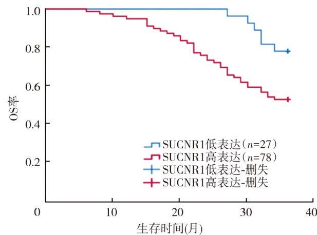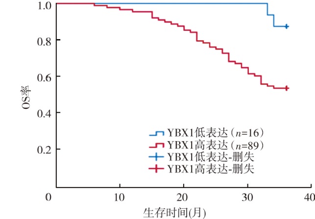 目的探讨结直肠癌肝转移(CRLM)患者癌组织中琥珀酸盐受体1(SUCNR1)和Y-框结合蛋白1(YBX1)表达及与临床病理特征和预后的关系。方法选取2016年1月至2020年5月在上海交通大学医学院苏州九龙医院接受手术治疗的105例CRLM患者为研究对象。比较癌组织及癌旁组织中SUCNR1、YBX1的高表达率;比较高、低SUCNR1、YBX1表达患者临床病理特征及预后情况;采用单因素与多因素Cox比例风险回归模型分析预后影响因素。结果SUCNR1在结直肠癌组织中染色主要定位于细胞膜, 阳性染色呈黄色或棕黄色;YBX1在结直肠癌组织中主要定位于细胞质, 阳性染色呈黄色或棕黄色。CRLM患者癌组织中SUCNR1高表达率为74.29%(78/105), 明显高于癌旁组织的27.62%(29/105);癌组织中YBX1高表达率为84.76%(89/105), 明显高于癌旁组织的32.38%(34/105), 差异均有统计学意义(χ2=45.75,P<0.001;χ2=59.36,P<0.001)。SUCNR1高表达与低表达患者组织学分级、肝转移距结直肠癌确诊时间差异均有统计学意义(χ2=7.43,P=0.006;χ2=9.19,P=0.002);YBX1高表达与低表达患者肝转移距结直肠癌确诊时间差异有统计学意义(χ2=13.08,P<0.001)。SUCNR1高表达与低表达患者3年总生存(OS)率分别为52.56%和77.78%, 差异有统计学意义(χ2=6.10,P=0.014);YBX1高表达与低表达患者3年OS率分别为53.93%和87.50%, 差异有统计学意义(χ2=6.02,P=0.014)。单因素分析显示, 组织学分级(HR=4.69, 95%CI为1.14~19.36,P=0.033)、肝转移距结直肠癌确诊时间(HR=4.05, 95%CI为1.02~16.62,P=0.048)、癌组织SUCNR1(HR=5.12, 95%CI为1.17~22.34,P=0.030)、YBX1表达(HR=6.29, 95%CI为1.55~25.47,P=0.010)均是CRLM患者OS的影响因素。多因素分析显示, 组织学分级(HR=4.16, 95%CI为1.12~15.54,P=0.034)、肝转移距结直肠癌确诊时间(HR=5.59, 95%CI为1.25~24.99,P=0.024)、癌组织SUCNR1表达(HR=3.68, 95%CI为1.28~10.54,P=0.015)、YBX1表达(HR=3.42, 95%CI为1.56~7.52,P=0.002)均是CRLM患者预后的独立影响因素。结论CRLM患者癌组织中SUCNR1和YBX1高表达率均高于癌旁组织, 高、低SUCNR1表达患者肿瘤组织学分级、肝转移距结直肠癌确诊时间有差异, 高、低YBX1表达患者肝转移距结直肠癌确诊时间有差异, SUCNR1、YBX1低表达患者3年OS率高于高表达患者, 组织学分级、肝转移距结直肠癌确诊时间、癌组织中SUCNR1、YBX1表达均是CRLM患者OS的独立影响因素。
