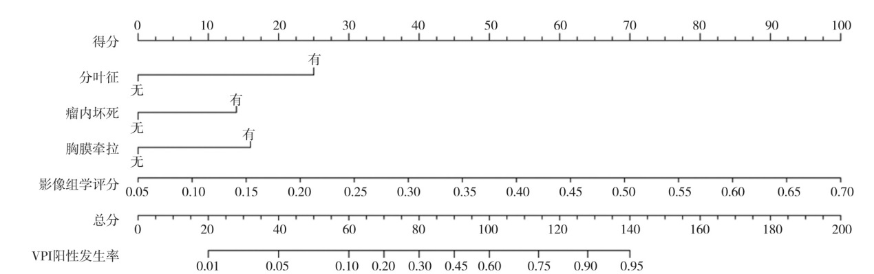 预测112例外周实性结节Ⅰ期肺腺癌患者VPI的单因素和多因素logistic回归分析"