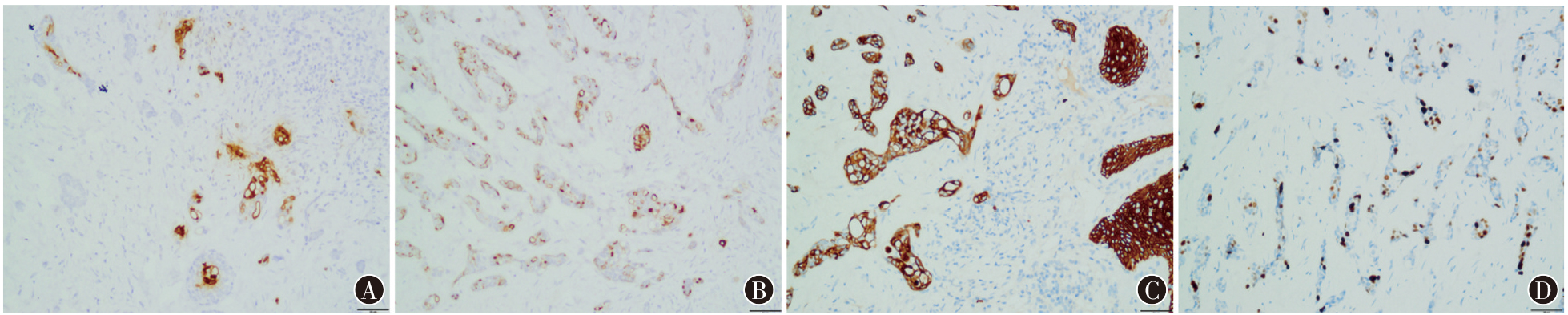 小汗腺汗孔癌(EPC)又称外泌汗腺汗孔癌,是一种少见的皮肤附属器恶性肿瘤,通常起源于小汗腺的导管,好发于头颈部和四肢皮肤,发生在乳头部位的较为罕见。现报道1例左乳头EPC患者的诊疗过程,复习相关文献并讨论,以期为临床提供诊疗思路。