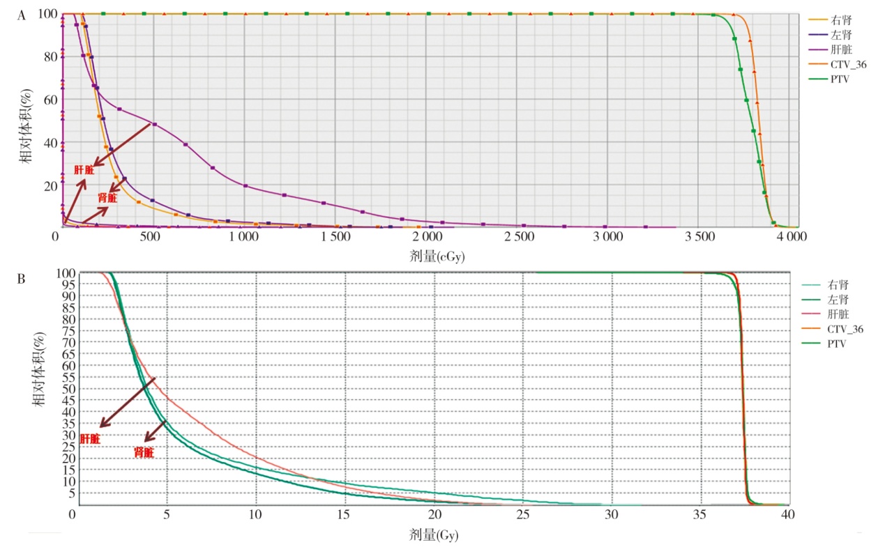 目的探索质子调强放疗(IMPT)、光子固定野调强放疗(IMRT)以及光子螺旋断层放疗(TOMO)技术应用于儿童全中枢神经系统肿瘤照射的剂量学特点。方法以1例山东省肿瘤防治研究院(山东省肿瘤医院)临床诊断为非典型畸胎样/横纹肌样瘤、脊膜转移、脑膜转移,行全脑全脊髓放疗(CSI)的14岁儿童患者靶区为例,根据靶区的临床处方和危及器官(OAR)的限值要求,分别设计IMPT、IMRT和TOMO计划。对各计划靶区的适形指数(CI)、均匀性指数(HI)和梯度指数(GI),以及正常组织的剂量体积指标进行评估,对比3类计划的剂量学特点。结果IMPT计划的CI(0.71)、HI(0.05)和GI(3.13)均与IMRT计划(0.80、0.08、3.14)相当,TOMO计划的HI(0.03)、GI(2.54)较优,且均在临床接受范围内。IMPT计划中并行器官受照剂量低于IMRT和TOMO计划;IMPT计划中双肺V5为2.9%,IMRT为37.6%,TOMO为43.5%;IMPT计划的肝脏Dmean为0.01 Gy(RBE),IMRT计划为6.12 Gy,TOMO计划为6.39 Gy;IMPT计划中膀胱、直肠、股骨头均没有受量,而在IMRT和TOMO计划中均有低剂量辐射。对于毗邻靶区和包含在靶区内的串行器官,IMPT计划中脊髓和脑干的Dmax分别为39.89和39.88 Gy(RBE),IMRT计划分别为39.43 和38.59 Gy,TOMO计划分别为38.41和37.69 Gy。IMPT计划中低剂量区显著优于光子放疗计划,其中患者体内10%的处方剂量区域所占的绝对体积IMPT计划较IMRT计划减少了70.10%,较TOMO计划减少了76.96%;30%的处方剂量体积IMPT计划较IMRT计划减少了53.49%,较TOMO计划减少了62.51%;50%的处方剂量体积IMPT计划较IMRT计划减少了39.06%,较TOMO计划减少了42.23%。结论在儿童CSI中,IMPT计划的低剂量区与并行OAR受照剂量显著少于IMRT和TOMO计划。3种计划的CI、HI和GI均能满足临床要求。对于毗邻靶区和包含在靶区内的串行器官,IMPT计划的Dmax可能比IMRT和TOMO计划剂量更高。