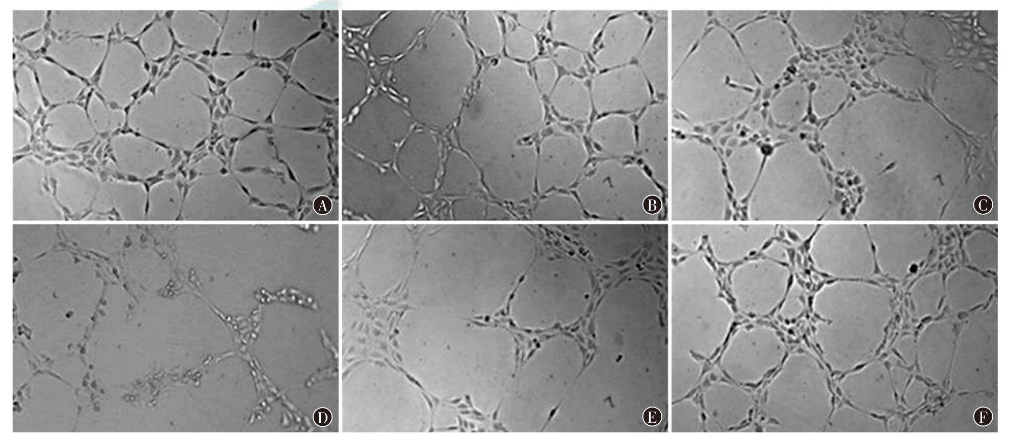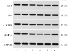 目的探究二甲双胍通过调控ALKBH3的表达对食管鳞状细胞癌细胞生长、迁移和血管生成的影响。方法使用不同浓度(0、0.5、1.0、2.0、4.0、8.0 mmol/L)的二甲双胍处理人食管癌TE-1细胞,将TE-1细胞分为空白对照组,二甲双胍低(0.5 mmol/L)、中(1.0 mmol/L)、高(2.0 mmol/L)浓度组,二甲双胍(2.0 mmol/L)+pcDNA-NC组,二甲双胍(2.0 mmol/L)+pcDNA-ALKBH3组。采用CCK-8法测定细胞活力,克隆形成实验检测细胞增殖能力,Transwell实验检测细胞迁移和侵袭能力,流式细胞术检测细胞凋亡能力,血管形成实验检测细胞管状结构形成情况。用4~6周龄雄性BALB/c无胸腺裸鼠构建异体移植瘤模型,采用随机数字表法分为模型对照组、二甲双胍组、二甲双胍+pcDNA-NC组和二甲双胍+pcDNA-ALKBH3组,每组6只,测定瘤体体积并称重,采用蛋白质印迹法检测凋亡相关蛋白Bcl-2、Bax及ALKBH3、血管内皮生长因子A(VEGF-A)蛋白表达水平,免疫组织化学检测CD31蛋白表达。结果使用0、0.5、1.0、2.0、4.0、8.0 mmol/L二甲双胍处理TE-1细胞48 h后,细胞活力分别为(100.00±0.00)%、(90.31±5.23)%、(81.25±8.65)%、(63.52±6.80)%、(54.64±5.35)%、(31.48±4.21)%,差异有统计学意义(F=98.11,P<0.001);0.5、1.0、2.0、4.0、8.0 mmol/L与0 mmol/L处理组间细胞活力差异均有统计学意义(均P<0.05)。二甲双胍对TE-1细胞的IC50为4.46 mmol/L。空白对照组,二甲双胍低、中、高浓度组,二甲双胍+pcDNA-NC组,二甲双胍+pcDNA-ALKBH3组TE-1细胞克隆形成数目分别为(153.15±13.55)、(134.80±11.62)、(116.24±10.43)、(93.17±8.85)、(89.39±8.46)、(110.26±7.21)个,差异有统计学意义(F=34.28,P<0.001);二甲双胍不同浓度组TE-1细胞克隆形成数随二甲双胍处理浓度增加明显减少(均P<0.05);与二甲双胍+ pcDNA-NC组相比,二甲双胍+pcDNA-ALKBH3组细胞克隆形成数增加(P<0.05)。6组TE-1细胞迁移数目分别为(152.13±13.40)、(133.85±10.72)、(115.28±8.64)、(91.16±7.89)、(85.39±7.23)、(116.85±8.36)个,细胞侵袭数目分别为(135.22±10.77)、(112.07±9.53)、(86.30±7.45)、(69.53±6.74)、(65.81±5.65)、(79.80±6.32)个,差异均有统计学意义(F=41.35,P<0.001;F=69.06,P<0.001);二甲双胍不同浓度组细胞迁移数目和侵袭数目均随二甲双胍处理浓度增加明显减少(均P<0.05);与二甲双胍+pcDNA-NC组相比,二甲双胍+ pcDNA-ALKBH3组细胞迁移数目和侵袭数目均显著增加(均P<0.05)。6组TE-1细胞凋亡率分别为(3.22±1.13)%、(13.82±1.90)%、(22.67±2.53)%、(29.18±3.24)%、(26.84±2.75)%、(16.36±1.63)%,差异有统计学意义(F=103.66,P<0.001);二甲双胍不同浓度组细胞凋亡率随二甲双胍处理浓度增加逐渐增高(均P<0.05);与二甲双胍+pcDNA-NC相比,二甲双胍+pcDNA-ALKBH3组细胞凋亡率较低(P<0.05)。空白对照组细胞管状结构完整,二甲双胍低、中、高浓度组细胞管状结构存在不同程度损坏,二甲双胍+ pcDNA-ALKBH3组细胞管状结构受损程度较低。6组TE-1细胞管状结构数目分别为(38.35±3.20)、(27.15±2.64)、(15.92±3.14)、(7.39±1.50)、(8.61±1.37)、(29.33±4.20)个,差异有统计学意义(F=113.92,P<0.001);与空白对照组相比,二甲双胍低、中、高浓度组细胞管状结构数目逐渐减少(均P<0.05);二甲双胍+ pcDNA-ALKBH3组细胞管状结构数目多于二甲双胍+pcDNA-NC组(P<0.05)。6组TE-1细胞Bcl-2、Bax、ALKBH3和VEGF-A蛋白表达水平差异均有统计学意义(F=56.36,P<0.001;F=57.26,P<0.001;F=159.30,P<0.001;F=132.89,P<0.001);与空白对照组相比,二甲双胍不同浓度组Bcl-2、ALKBH3和VEGF-A蛋白表达均较低,Bax蛋白表达水平均较高(均P<0.05);与二甲双胍+pcDNA-NC相比,二甲双胍+pcDNA-ALKBH3组Bcl-2、ALKBH3和VEGF-A蛋白表达水平均较高,Bax表达水平均较低(均P<0.05)。模型对照组、二甲双胍组、二甲双胍+pcDNA-NC组和二甲双胍+pcDNA-ALKBH3组裸鼠移植瘤肿瘤质量分别为(1.16±0.12)、(0.46±0.05)、(0.50±0.06)、(1.19±0.14)g,肿瘤体积分别为(878.36±108.93)、(413.59±50.23)、(439.78±51.39)、(793.75±96.98)mm3,差异均有统计学意义(F=96.61,P<0.001;F=51.90,P<0.001);二甲双胍组较模型对照组肿瘤质量降低、体积减小(均P<0.05);二甲双胍+pcDNA-ALKBH3组较二甲双胍组和二甲双胍+pcDNA-NC组肿瘤质量升高、体积增大(均P<0.05)。CD31主要分布在肿瘤细胞质内和细胞膜上。4组移植瘤组织CD31阳性率和VEGF-A蛋白表达水平差异均有统计学意义(F=7.12,P=0.002;F=48.81,P<0.001);二甲双胍组CD31阳性率和VEGF-A蛋白表达水平均低于模型对照组,二甲双胍+ pcDNA-ALKBH3组中CD31阳性率和VEGF-A蛋白表达水平高于二甲双胍组和二甲双胍+pcDNA-NC组(均P<0.05)。结论二甲双胍可通过降低ALKBH3的表达抑制食管鳞状细胞癌细胞增殖、迁移和肿瘤血管生成。