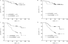 目的 探讨局部晚期鼻咽癌诱导化疗后肿瘤退缩率对生存预后的预测价值。方法 选择2009年1月至2012年12月在陆军军医大学大坪医院初治的161例Ⅲ~ⅣA期鼻咽癌患者作为研究对象,分析鼻咽癌患者诱导化疗前后肿瘤体积变化与患者生存时间的关系。采用Kaplan-Meier法绘制生存曲线并行log-rank检验,采用Cox回归分析影响鼻咽癌患者预后的危险性因素。结果 鼻咽原发肿瘤诱导化疗后肿瘤退缩率在N2-3期和N1期(Z=2.177,P=0.029)及T1-2期和T3-4期(Z=-4.501,P<0.001)患者间差异均有统计学意义。在N1期患者中,诱导化疗后鼻咽原发肿瘤达到(n=18)与未达到客观缓解患者(n=19)的5年总生存(OS)率分别为88.89%、57.45%,颈部淋巴结转移肿瘤达到(n=19)与未达到客观缓解患者(n=18)的5年OS率分别为86.72%、49.10%,差异均有统计学意义(χ 2=6.023,P=0.014;χ 2=7.441,P=0.006);N2-3期患者中,诱导化疗后鼻咽原发肿瘤达到(n=81)和未达到客观缓解患者(n=43)的5年OS率分别为77.56%、50.70%,颈部淋巴结转移肿瘤达到(n=85)与未达到客观缓解患者(n=39)的5年OS率分别为75.11%、52.04%,差异均有统计学意义(χ 2=8.037,P=0.005;χ 2=7.268,P=0.007)。单因素Cox回归分析表明,在N1期患者中,诱导化疗后鼻咽原发肿瘤退缩率(HR=0.048,95%CI为0.004~0.644,P=0.022)、鼻咽原发肿瘤疗效(HR=0.174,95%CI为0.037~0.830,P=0.028)和颈部淋巴结转移肿瘤疗效(HR=0.154,95%CI为0.033~0.725,P=0.017)均与OS相关;在N2-3期患者中,诱导化疗后鼻咽原发肿瘤退缩率(HR=0.178,95%CI为0.056~0.564,P=0.003)、颈部淋巴结转移肿瘤退缩率(HR=0.081,95%CI为0.020~0.324,P<0.001)、鼻咽原发肿瘤疗效(HR=0.422,95%CI为0.228~0.781,P=0.006)和颈部淋巴结转移肿瘤疗效(HR=0.439,95%CI为0.238~0.813,P=0.009)均与OS相关;在包含N分期和肿瘤退缩率以及N分期和疗效的多因素Cox回归中,交互项均未达到统计学意义(均P>0.05)。在T1-2期患者中,诱导化疗后鼻咽原发肿瘤达到(n=45)与未达到客观缓解患者(n=13)的5年OS率分别为77.55%、84.62%,颈部淋巴结转移肿瘤达到(n=43)与未达到客观缓解患者(n=15)的5年OS率分别为78.89%、80.00%,差异均无统计学意义(χ 2=0.239,P=0.625;χ 2=0.005,P=0.943);在T3-4期患者中,诱导化疗后鼻咽原发肿瘤达到(n=54)与未达到客观缓解患者(n=49)的5年OS率分别为78.90%、45.00%,颈部淋巴结转移肿瘤达到(n=61)与未达到客观缓解患者(n=42)的5年OS率分别为75.10%、42.89%,差异均有统计学意义(χ 2=13.615,P<0.001;χ 2=12.752,P<0.001)。单因素Cox回归分析表明,在T1-2期患者中,诱导化疗后肿瘤退缩率、鼻咽原发肿瘤及颈部淋巴结转移肿瘤疗效均与OS无关(均P>0.05);在T3-4期患者中,诱导化疗后鼻咽原发肿瘤退缩率(HR=0.121,95%CI为0.033~0.444,P=0.001)、颈部淋巴结转移肿瘤退缩率(HR=0.126,95%CI为0.036~0.442,P=0.001)、鼻咽原发肿瘤疗效(HR=0.297,95%CI为0.150~0.588,P<0.001)和颈部淋巴结转移肿瘤疗效(HR=0.329,95%CI为0.173~0.625,P=0.001)均与OS相关;多因素Cox回归分析发现,鼻咽原发肿瘤疗效与T分期交互项接近统计学意义(P=0.062)。结论 Ⅲ~ⅣA期鼻咽癌患者中,T3-4期患者诱导化疗后鼻咽部原发病灶缓解情况对预测生存预后具有重要价值。