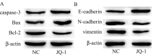 蛋白质印迹法检测JQ-1对KrasWT分化型甲状腺癌TPC-1细胞中凋亡及EMT相关蛋白的影响( x -±s,n=3)"