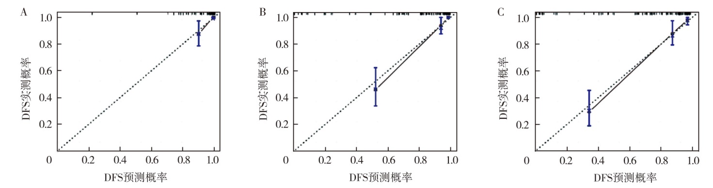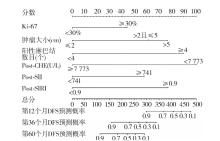 目的 分析接受手术治疗的ⅠA~ⅢA期乳腺癌患者术前、术后血清胆碱酯酶(CHE)水平, 探索其及外周血炎症指标在ⅠA~ⅢA期乳腺癌预后预测中的作用。方法 回顾性研究2012年1月至2017年12月在徐州医科大学附属淮安医院接受手术和术后辅助治疗的152例ⅠA~ⅢA期乳腺癌患者相关血液指标。使用X-tile 3.6.1软件计算血清CHE水平和外周血炎症指标[全身免疫炎症指数(SII)和全身炎症反应指数(SIRI)]的最佳截断值。根据最佳截断值将患者分为低值组和高值组。采用Kaplan-Meier曲线和Cox回归分析评估CHE及外周血炎症指标与无瘤生存期(DFS)的相关性。采用Spearman相关系数和Wilcoxon检验评估治疗前后CHE和炎症指标的相关性和变化。通过R软件构建基于独立预后因素的列线图预测模型, 并用Bootstrap法进行验证。结果 治疗前后患者的CHE水平分别为8 645.0(7 251.3, 10 229.3)、9 309.0(7 801.0, 10 835.3)U/L, 差异有统计学意义(Z=2.73, P=0.006)。与患者DFS相关的术后CHE(Post-CHE)、术后SII(Post-SII)和术后SIRI(Post-SIRI)的最佳截断值分别为7 773 U/L、741和0.9。单因素分析显示, 肿瘤大小(≤2 cm比>2 cm且≤5 cm:HR=2.55, 95%CI为1.30~4.99, P=0.006;≤2 cm比>5 cm:HR=8.95, 95%CI为4.15~19.32, P<0.001)、阳性淋巴结数目(HR=3.84, 95%CI为2.24~6.58, P<0.001)、临床分期(Ⅰ期比Ⅱ期:HR=1.52, 95%CI为0.68~3.39, P=0.309;Ⅰ期比Ⅲ期:HR=8.12, 95%CI为3.76~17.55, P<0.001)、Ki-67表达(HR=2.19, 95%CI为1.24~3.84, P=0.007)、是否放疗(HR=2.05, 95%CI为1.19~3.53, P=0.010)、Post-CHE(HR=6.81, 95%CI为3.94~11.76, P<0.001)、术前中性粒细胞/淋巴细胞比值(Pre-NLR)(HR=1.11, 95%CI为1.02~1.21, P=0.014)、Post-NLR(HR=5.23, 95%CI为2.78~9.85, P<0.001)、Pre-血小板/淋巴细胞比值(PLR)(HR=2.08, 95%CI为1.01~4.26, P=0.046)、Post-PLR(HR=7.11, 95%CI为3.78~13.37, P<0.001)、Pre-淋巴细胞/单核细胞比值(LMR)(HR=0.37, 95%CI为0.20~0.66, P<0.001)、Post-LMR(HR=0.23, 95%CI为0.13~0.41, P<0.001)、Pre-SII(HR=1.81, 95%CI为1.05~3.12, P=0.033)、Post-SII(HR=6.12, 95%CI为3.48~10.76, P<0.001)、Pre-SIRI(HR=2.12, 95%CI为1.24~3.63, P=0.006)、Post-SIRI(HR=4.93, 95%CI为2.87~8.48, P<0.001)与ⅠA~ⅢA期乳腺癌患者DFS相关。多因素分析显示, 肿瘤大小(≤2 cm比>2 cm且≤5 cm:HR=2.86, 95%CI为1.41~5.78, P=0.003;≤2 cm比>5 cm:HR=3.72, 95%CI为1.50~9.26, P=0.005)、阳性淋巴结数目(HR=4.66, 95%CI为2.28~9.54, P<0.001)、Ki-67表达(HR=2.13, 95%CI为1.15~3.94, P=0.016)、Post-CHE(HR=0.18, 95%CI为0.10~0.33, P<0.001)、Post-SII(HR=2.71, 95%CI为1.39~5.29, P=0.004)、Post-SIRI(HR=3.77, 95%CI为1.93~7.36, P<0.001)是ⅠA~ⅢA期乳腺癌患者DFS的独立影响因素。Kaplan-Meier生存曲线分析显示, Ki-67<30%组患者中位DFS未达到, Ki-67≥30%组的中位DFS为89.0个月, 3、5年DFS率分别为84.9 %比75.9%、80.8%比64.3%, 差异具有统计学意义(χ2=7.65, P=0.006);肿瘤大小≤2 cm组患者中位DFS未达到, 2 cm<肿瘤大小≤5 cm组中位DFS为93.5个月, 肿瘤大小>5 cm组中位DFS为26.3个月, 3、5年DFS率分别为95.5 %比74.6%比42.1%、86.3%比68.6%比25.3%, 差异具有统计学意义(χ2=40.46, P<0.001);阳性淋巴结数目<4个组患者中位DFS未达到, 阳性淋巴结数目≥4个组中位DFS为30.7个月, 3、5年DFS率分别为87.9%比46.4%、81.4%比28.6%, 差异具有统计学意义(χ2=47.34, P<0.001);Post-CHE<7 773U/L组患者中位DFS为47.3个月, Post-CHE≥7 773U/L组中位DFS未达到, 3、5年DFS率分别为52.8 %比88.6%、27.8%比81.2%, 差异具有统计学意义(χ2=62.17, P<0.001);Post-SII<741组患者中位DFS未达到, Post-SII≥741组中位DFS为30.5个月, 3、5年DFS率分别为88.1%比38.5%、80.1%比30.8%, 差异具有统计学意义(χ2=50.78, P<0.001);Post-SIRI<0.9组患者中位DFS未达到, Post-SIRI≥0.9组中位DFS为33.3个月, 3、5年DFS率分别为93.5 %比46.7%、84.9%比39.9%, 差异具有统计学意义(χ2=40.67, P<0.001)。Spearman相关性分析发现, Post-CHE与Post-SII无相关性(r=-0.111, P=0.175), Post-CHE与Post-SIRI呈负相关(r=-0.228, P=0.005)。治疗后CHE较术前升高, 且治疗后CHE升高组患者的中位DFS未达到, CHE降低组患者的中位DFS为61.8个月, 差异有统计学意义(χ2=25.67, P<0.001)。基于独立预后因素构建的列线图具有良好的预测性能, 一致性指数为0.893。结论 治疗后患者血清CHE水平显著升高, 术后血清CHE联合SII及SIRI可有效预测ⅠA~ⅢA期乳腺癌患者的DFS, 且治疗后CHE升高患者预后较好, 基于独立预后因素构建的列线图对乳腺癌患者的DFS具有良好的预测性能。