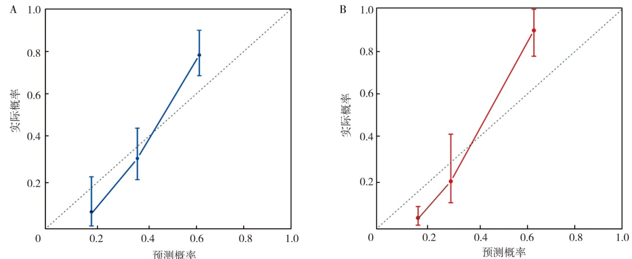 目的评估基于原发灶18F-氟代脱氧葡萄糖(18F-FDG)PET/CT影像组学联合模型预测非小细胞肺癌(NSCLC)淋巴结转移的价值。方法回顾性分析南京鼓楼医院2013年6月至2023年7月治疗前行PET/CT显像的203例NSCLC患者的临床资料。按照7∶3比例将患者随机分为训练集(n=142)和验证集(n=61)。在训练集中建立预测模型, 在训练集和验证集中分别对模型进行预测效能评估和临床应用价值验证。通过3D-slicer软件获得原发灶传统PET/CT参数和PET/CT影像组学特征。采用最小绝对收缩与选择算子(LASSO)、随机森林和极端梯度提升进行特征提取。采用支持向量机构建影像组学标签影像组学评分(Radscore)。采用单因素、多因素logistic回归分析预测NSCLC患者淋巴结转移的影响因素并建立模型, 采用受试者操作特征(ROC)曲线评估模型的预测效能, 采用校准曲线和临床决策曲线(DCA)评估模型的临床应用价值。结果203例NSCLC患者中淋巴结转移116例, 其中训练集64例、验证集52例。采用3种互补的经典机器学习方法进行特征筛选, 最终分别得到10个影像组学特征。Radscore-PET的最佳阈值为0.43, Radscore-CT的最佳阈值为0.39。单因素分析显示, 性别(OR=0.48, 95%CI为0.24~0.95,P=0.036)、肿瘤标志物水平(OR=3.81, 95%CI为1.84~7.91,P<0.001)、肿瘤长径(OR=2.56, 95%CI为1.27~5.16,P=0.009)、肿瘤短径(OR=3.73, 95%CI为1.75~7.92,P=0.001)、空泡征(OR=0.32, 95%CI为0.12~0.86,P=0.024)、环形代谢(OR=3.67, 95%CI为1.33~10.13,P=0.012)、最大标准化摄取值(SUVmax)(OR=6.57, 95%CI为3.03~14.25,P<0.001)、肿瘤代谢体积(MTV)(OR=2.91, 95%CI为1.43~5.92,P=0.003)、病灶糖酵解总量(TLG)(OR=4.23, 95%CI为2.08~8.59,P<0.001)、Radscore-PET(OR=21.93, 95%CI为9.04~53.20,P<0.001)和Radscore-CT(OR=13.72, 95%CI为6.12~30.76,P<0.001)均是预测NSCLC患者淋巴结转移的影响因素。多因素分析显示, 肿瘤标志物水平(OR=2.55, 95%CI为1.11~5.90,P=0.028)、空泡征(OR=0.26, 95%CI为0.08~0.83,P=0.023)、SUVmax(OR=5.94, 95%CI为1.99~17.75,P=0.001)、Radscore-PET(OR=25.51, 95%CI为5.92~110.22,P<0.001)、Radscore-CT(OR=8.68, 95%CI为2.73~27.61,P<0.001)均是预测NSCLC患者淋巴结转移的独立影响因素。基于上述独立影响因素建立模型:传统模型(肿瘤标志物水平、空泡征、SUVmax)、PET模型(SUVmax、Radscore-PET)、CT模型(空泡征、Radscore-CT)和联合模型(肿瘤标志物水平、空泡征、SUVmax、Radscore-PET、Radscore-CT)。ROC曲线分析显示, 训练集中传统模型、PET模型、CT模型和联合模型的曲线下面积(AUC)分别为0.75(95%CI为0.67~0.82)、0.90(95%CI为0.84~0.95)、0.85(95%CI为0.78~0.90)和0.94(95%CI为0.88~0.97), 联合模型的预测价值高于传统模型(Z=5.01,P<0.001)、PET模型(Z=1.99,P=0.047)、CT模型(Z=3.25,P=0.001);验证集中传统模型、PET模型、CT模型和联合模型的AUC分别为0.65(95%CI为0.52~0.77)、0.86(95%CI为0.74~0.93)、0.85(95%CI为0.73~0.93)和0.90(95%CI为0.80~0.96), 联合模型的预测价值高于传统模型(Z=3.23,P=0.001)。训练集联合模型的敏感性和特异性分别为84.37%和91.03%, 验证集联合模型的敏感性和特异性分别为82.61%和94.74%。校准曲线显示, 训练集和验证集实际发生概率均与预测概率较为一致。DCA显示, 联合模型的辨别能力在训练集和验证集中均较好。结论肿瘤标志物水平、空泡征、SUVmax、Radscore-PET、Radscore-CT均是预测NSCLC患者淋巴结转移的独立影响因素, 基于上述指标构建的联合模型对NSCLC淋巴结转移具有良好的预测效能和临床应用价值。