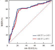 | 良性乳腺结节患者 (n=83) | 乳腺癌患者 (n=106) | χ2/t值 | P值 | 良性乳腺患者 (n=109) | 乳腺癌患者 (n=136) | χ2/t值 | P值 | ||