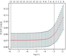 ObjectiveTo establish a risk prediction model based on least absolute shrinkage and selection operator (LASSO) regression for procalcitonin (PCT), milk fat globule-epidermal growth factor 8 (MFG-E8) and CXC chemokine ligand 9 (CXCL9) in elderly patients with liver cancer after transcatheter arterial chemoembolization (TACE).MethodsA total of 150 elderly patients with liver cancer who underwent TACE treatment in Shishi City Hospital, Fujian Province and 910th Hospital of the Chinese People's Liberation Army Joint Logistic Support Force from August 2020 to August 2023 were selected as the study subjects. Patients with infection after TACE were included in the infected group and those without infection were included in the non-infected group according to whether the patients had infection during the postoperative hospitalization. The baseline data of patients were collected and compared. LASSO regression was used to screen the factors that may affect the infection after TACE in elderly patients with liver cancer and binary logistic regression analysis was performed. According to the results of regression analysis, a nomogram model was constructed based on the regression analysis results and the nomogram was internally validated using Bootstrap and receiver operator characteristic (ROC) curves.ResultsThere were 18 cases of infection in 150 elderly patients with liver cancer after TACE, with an incidence of 12.00%. There were statistically significant differences in focal rupture and bleeding (χ2=5.92,P=0.015), ascites (χ2=6.70,P=0.010), skin or mucosal damage (χ2=6.67,P=0.010) between the infected group (n=18) and the non-infected group (n=132). The levels of serum PCT [(1.17±0.32 ) μg/Lvs.(0.91±0.14) μg/L], MFG-E8 [(194.29±45.85) pg/mlvs.(158.76±28.63) pg/ml] and CXCL9 [(948.49±52.38) pg/mlvs.(886.05±50.07) pg/ml] were higher than those in the non-infected group, with statistically significant differences (t=4.13,P<0.001;t=4.55,P<0.001;t=4.94,P<0.001). Four factors related to infection after TACE intervention in patients with liver cancer were finally selected by LASSO regression model, skin or mucosal damage, PCT, MFG-E8, CXCL9 levels. Binary logistic regression analysis showed that skin or mucosal damage (OR=13.48, 95%CI: 1.29-140.47,P=0.030), high levels of serum PCT (OR=1.13, 95%CI: 1.05-1.22,P=0.001), MFG-E8 (OR=1.04, 95%CI: 1.01-1.07,P=0.003), CXCL9 (OR=1.05, 95%CI: 1.02-1.08,P=0.001) were risk factors for infection after TACE in elderly patients with liver cancer. Based on skin or mucosa damage, PCT, MFG-E8 and CXCL9, a nomogram prediction model for postoperative infection in elderly patients with liver cancer after TACE intervention was established. Calibration curve showed that the C-index of postoperative infection predicted by the nomogram model in elderly patients with liver cancer after TACE intervention was 0.939, indicating the model had good discrimination. ROC curve analysis showed that the area under the curve (AUC) predicted by the nomogram model for infection after TACE intervention in elderly patients with liver cancer was 0.960 (95%CI: 0.926-0.995,P<0.001), which had certain predictive value. The specificity, sensitivity and Youden index were 0.864, 0.944 and 0.808, respectively.ConclusionsSkin or mucosal damage, high levels of serum PCT, CXCL9 and MFG-E8 are closely related to postoperative infection in elderly patients with liver cancer after TACE, and the prediction model constructed based on this has better predictive performance for postoperative infection.