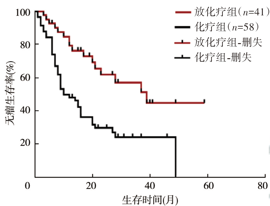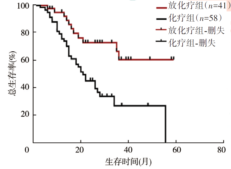 | 一般临床 特征 | 例数 | 放化疗组 (n=41) | 化疗组 (n=58) | χ2值 | P值 |
