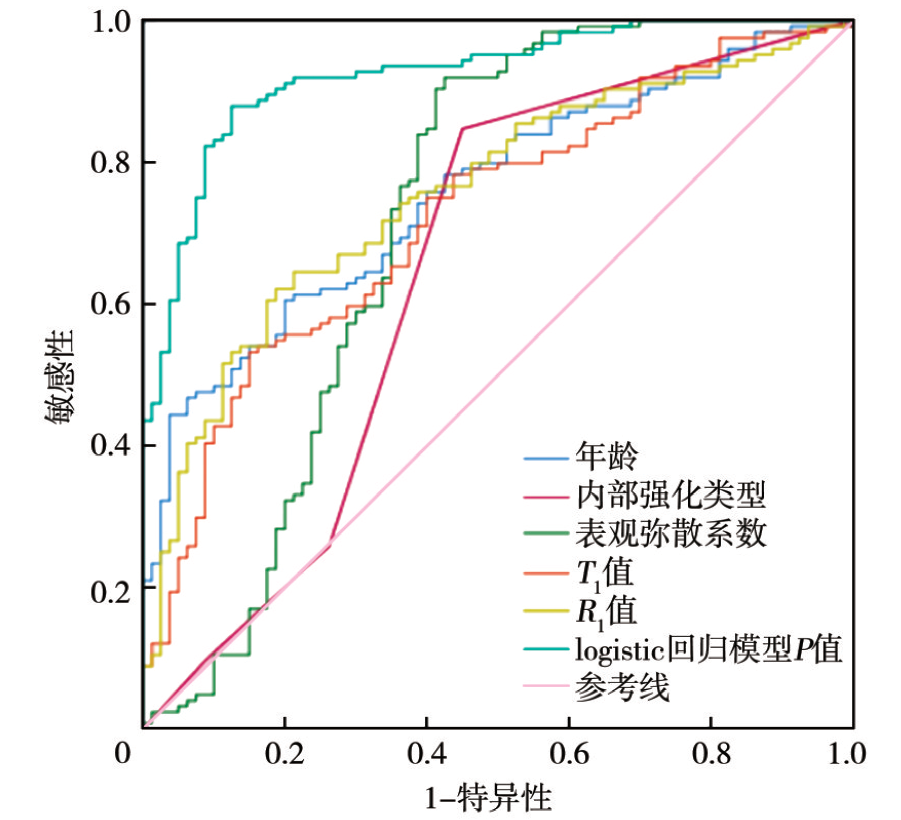 | 表观弥散系数 | -5.21 | 1.08 | 23.42 | 0.01 | 0.00~0.05 | <0.001 |