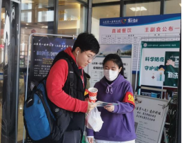 当天中午,研究生第十二党支部全体党员佩戴“党员先锋岗”袖章,到达服务岗位,开始了紧张热情的群众服务。本次活动一共三项:站岗测温、发放防疫宣传单、发放防疫口罩。