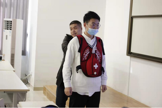 本次活动由2021级血液病学专业型硕士张超伟同学采用理论知识讲解和实际操作相结合的方式,向同学们详细认真的介绍了海姆立克急救法、心肺复苏、体外除颤仪器的使用方法三项内容。