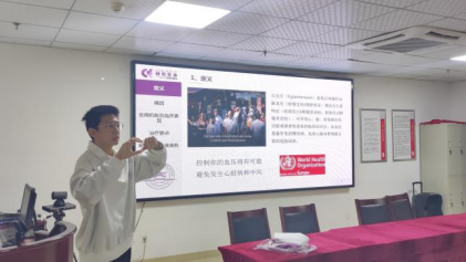 张文博生动地将血管狭窄比喻为现场半开的门,巧妙的比喻让听众更加深刻地理解了维持心血管健康的重要性。通过形象的讲解,向社区居民传递了关于血管健康的重要知识,使抽象的医学概念变得具体而贴近生活。不仅增进了居民对高血压的认识,也使他们更加了解如何在居家环境中进行自我健康管理。