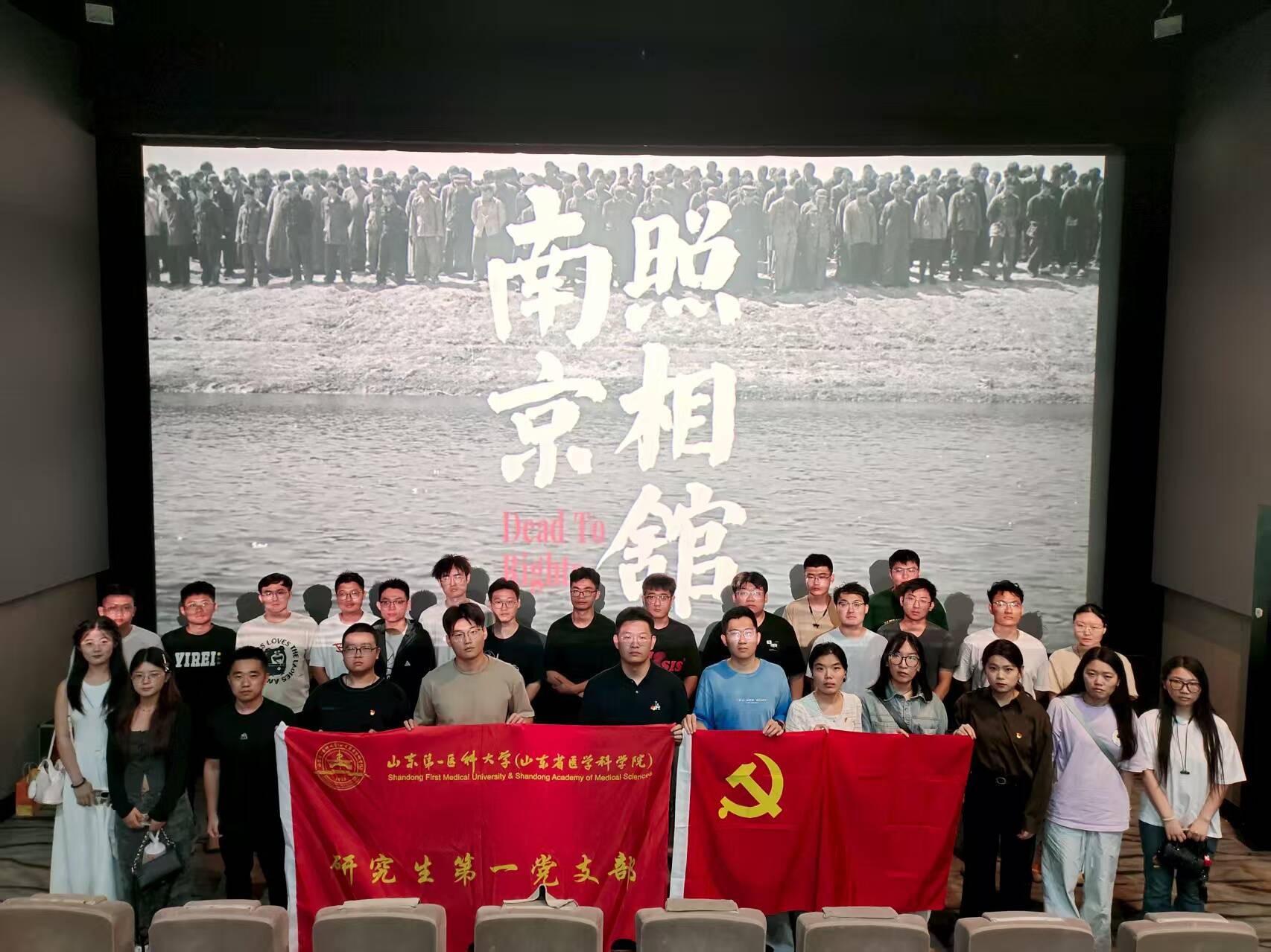 观影结束后,全体党员进行交流发言。组织委员张含哲同志表示:“影片最打动我的是普通人在极端环境下的勇气与担当。他们原本只是平凡的小人物,却在历史的关键时刻选择了坚守正义。这让我思考,作为新时代的青年党员,我更应认识到和平的珍贵和生命的价值。这段历史警示我们,只有国家强盛,人民才能安居乐业。”宣传委员王冰分享道:“电影中‘照片会褪色,但历史不能’这句台词让我印象深刻。历史是最好的教科书,也是最好的清醒剂。只有铭记历史,我们才能更好地面向未来。我们要学习坚韧不拔的精神,努力攻克医学难题,为健康中国建设贡献自己的力量。”支部党员马晓龙谈到:“影片中有一幕令我泪目——老金拉开幕布展现祖国山河,带领众人高喊‘大好河山,寸土不让’。这种爱国情怀和民族气节正是我们需要传承和弘扬的。”支部党员庞洪前表示:“作为研究生党员,我们要从历史中汲取智慧和力量,把爱国情怀转化为科研学习的动力,为实现中华民族伟大复兴贡献自己的力量。”
