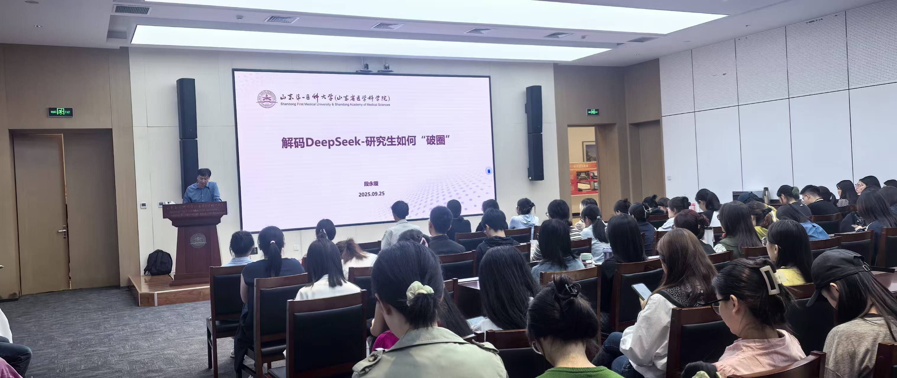 段永璇主任以《解码DeepSeek——研究生如何“破圈”》为题,系统梳理了大模型近年来的发展历程,详细讲解了DeepSeek的基本原理与核心功能。他结合多个实际应用场景,深入阐释DeepSeek在学术学习、科研实践、论文写作、PPT制作等方面的具体运用方法,涵盖从文献综述、研究热点分析到思维导图构建、公文撰写等全流程辅助支持。此外,他还介绍了DeepSeek在医学专业领域的应用潜力,包括病理诊断辅助、数据分析与可视化、Python数据采集等实用技能,并分享了高效的提示词设计技巧,针对不同的任务需求推荐相关AI工具。