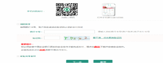 选择手机银行扫码支付、K码支付、K宝支付或者微信扫码支付。
