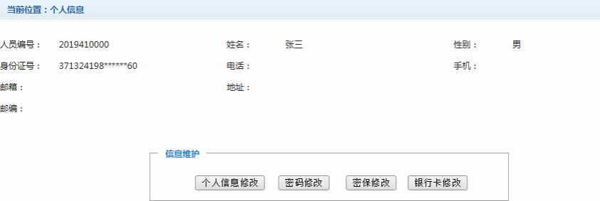 点击个人信息界面的个人信息修改,显示 3.2.1-1 所示的个人信息维护界面。在相应的输入框,输入需要修改的个人信息,点击“修改按钮”完成个人信息维护。未保存前,点击