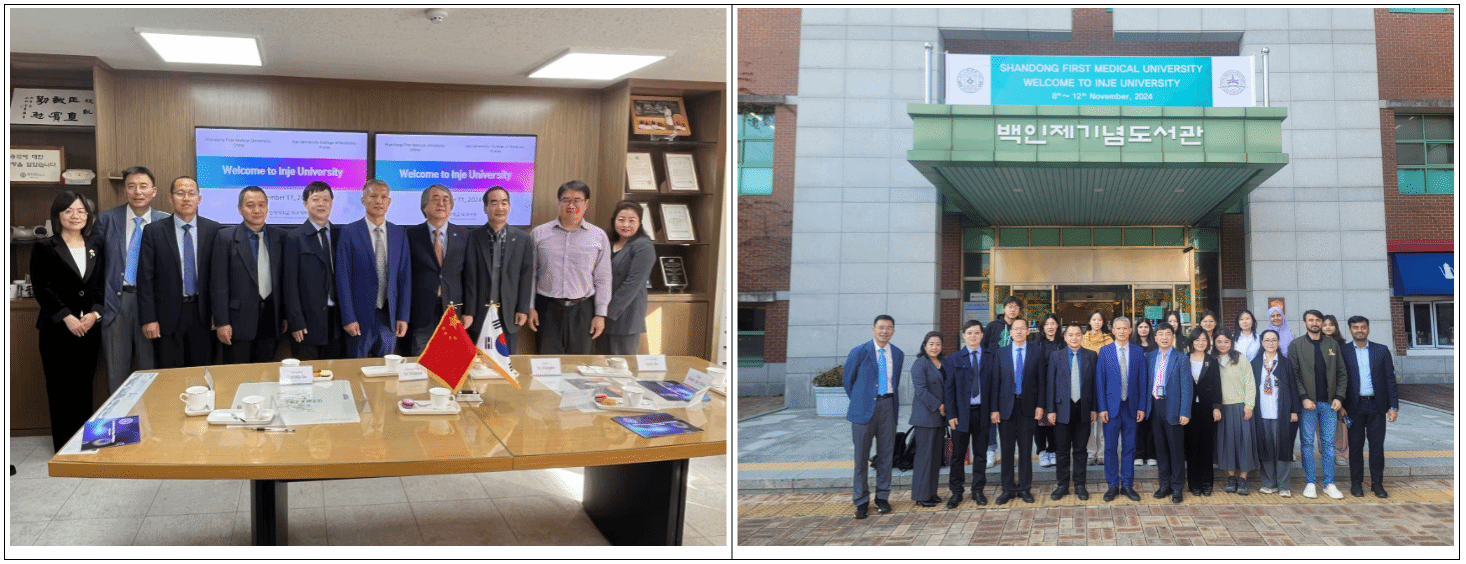11月11日,代表团访问韩国仁济大学,与校长全民鉉、副校长李大熙等进行了座谈交流。双方希望在合作备忘录基础上,就学生交流、联合培养、科研合作及附属医院医生培训、联合会诊等方面开展实质性合作。经过深入细致的讨论,双方就中外双导师联合培养博硕士研究生达成合作意向。