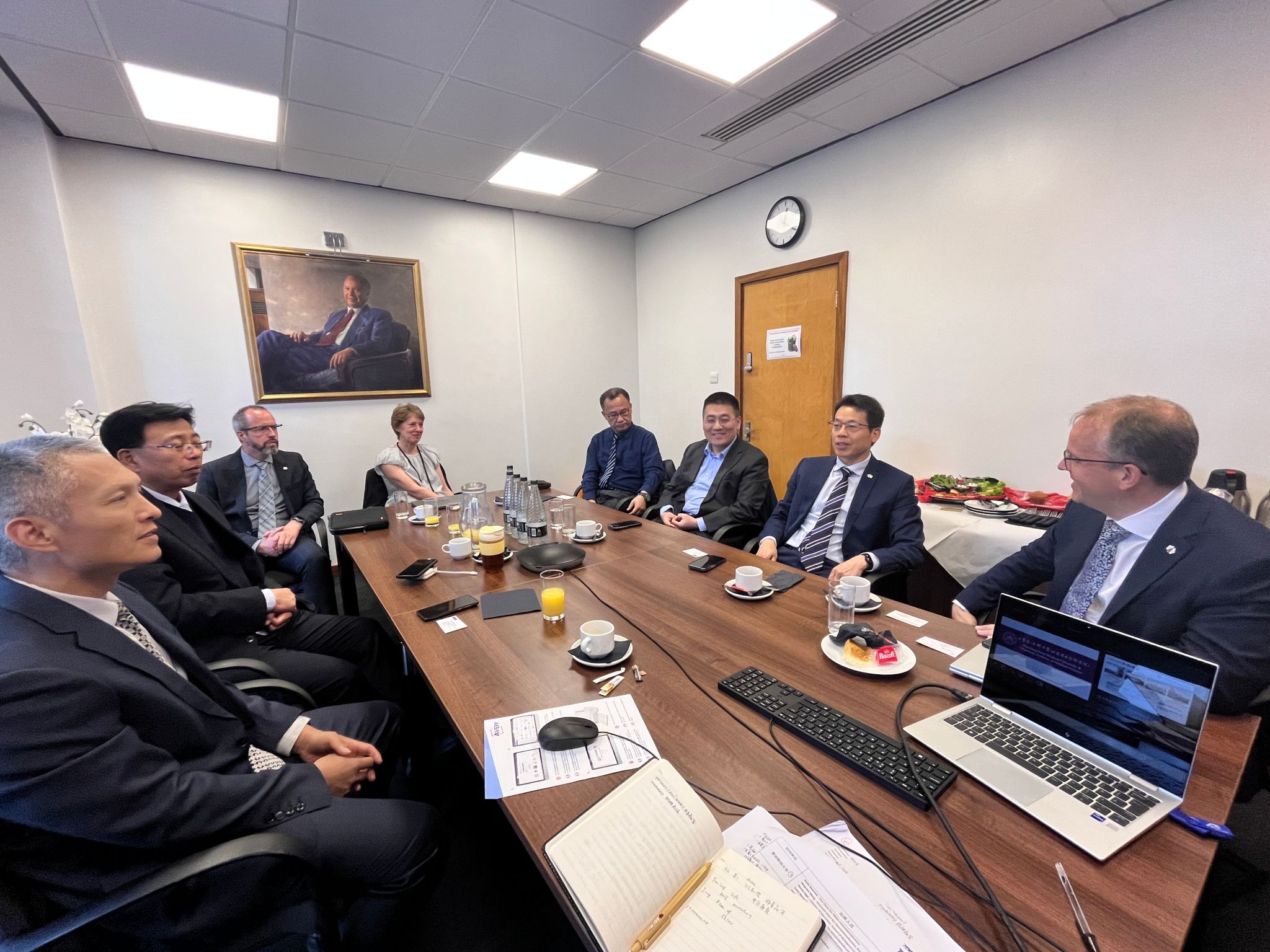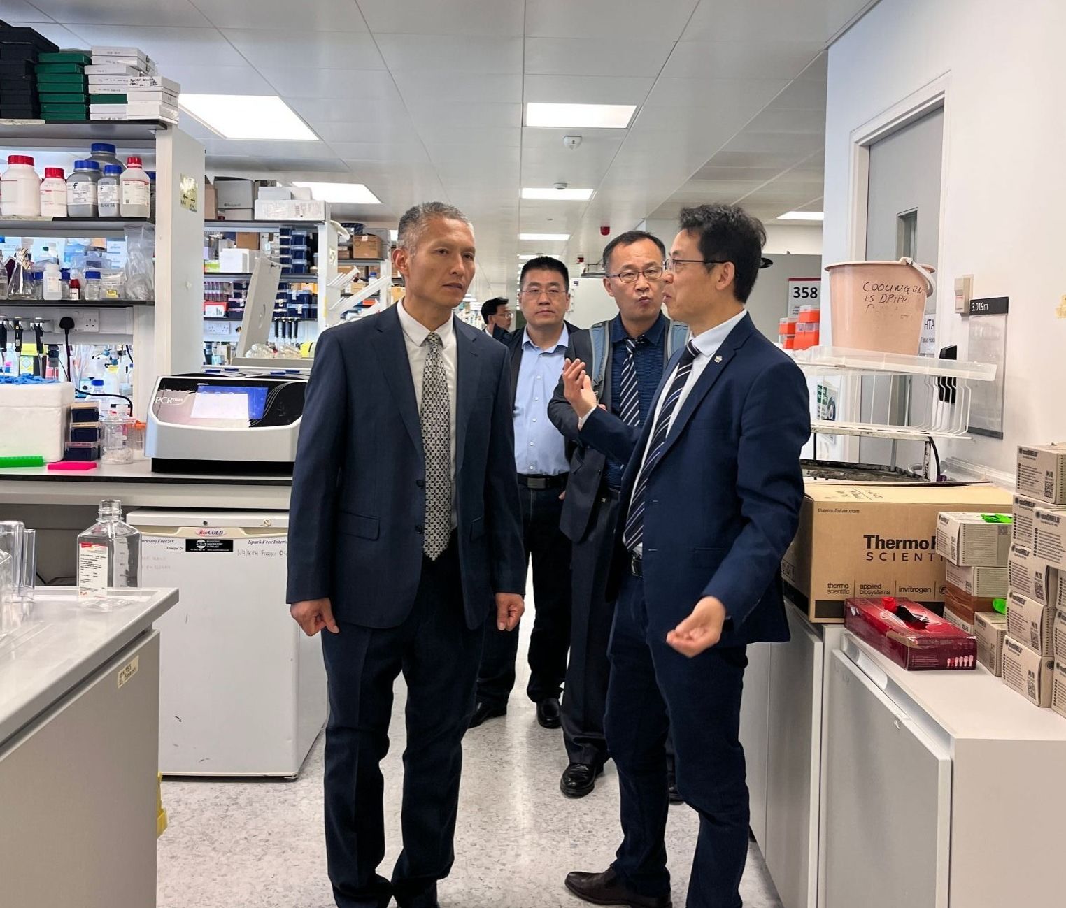 在曼彻斯特大学,代表团与生物医学与健康学部副学部长(分管国际事务)基思·布伦南、协理副学部长孟庆军等深入交流,双方详细讨论了学生交流的长短期项目如暑期学校、学期学年项目、硕博士培养项目以及国家留学基金委创新型人才合作培养项目的实施方案。期间,代表团实地调研了曼彻斯特大学生物科学实验室,了解其在生物医学研究、疾病机制探索等方向的科研布局与技术平台建设等情况。