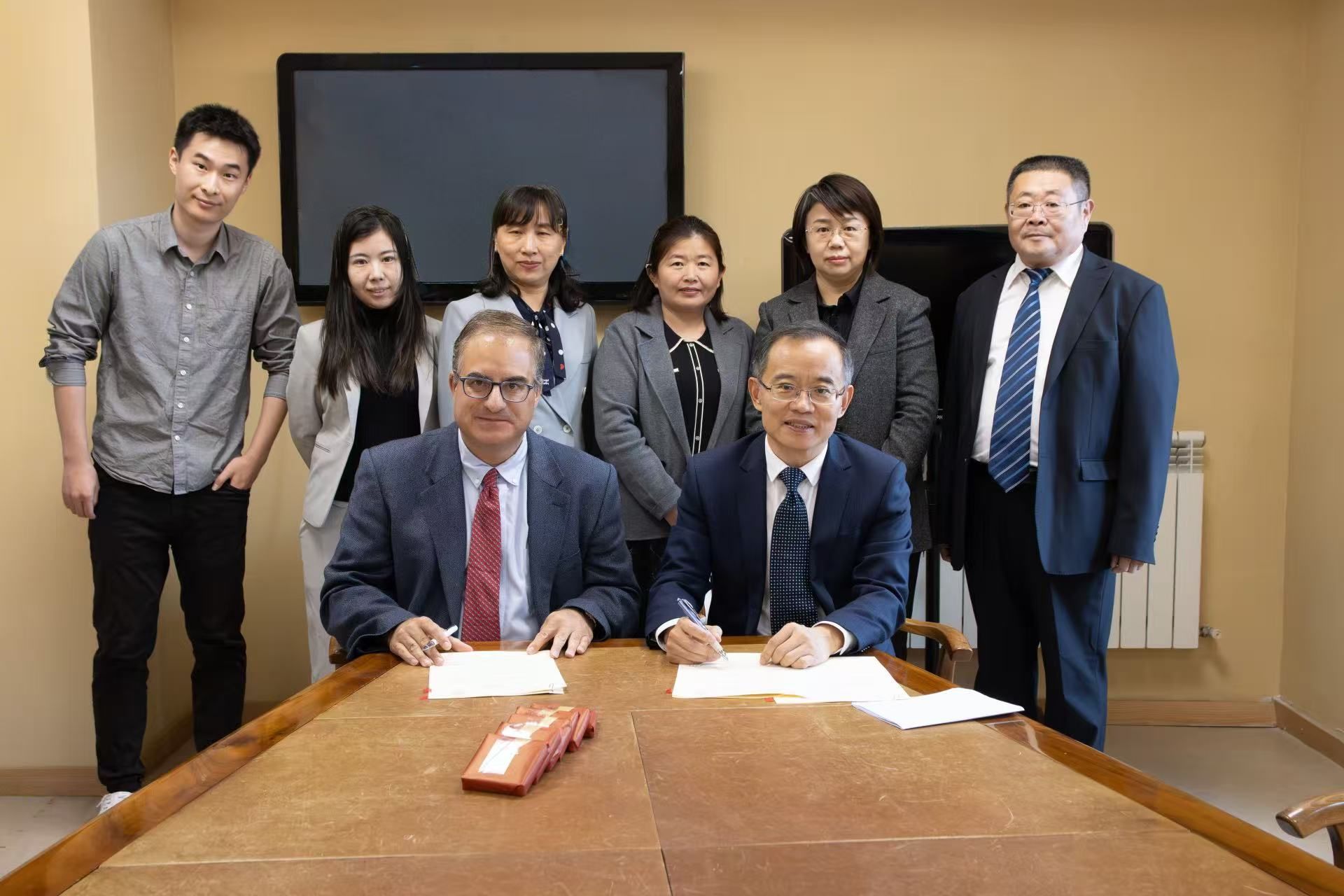 在萨拉曼卡大学,王宇轩与萨拉曼卡大学副校长劳尔·桑切斯·普列托(Raúl Sánchez Prieto)共同签署合作备忘录(MOU),正式敲定研究人员互访、师生交流、共建科研项目、联合出版专著及共同举办国际研讨会等多项合作内容。会谈期间,代表团还与该校国际语言中心负责人达成学生第二外语交流学习合作意向。