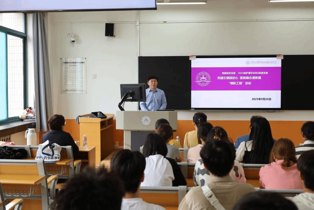 为全面落实校(院)“领航工程”工作部署,推动立德树人根本任务落地见效,9月26日下午,档案馆党支部与2023级护理学本科6班团支部在泰安校区教学北楼A2003教室共同举办“党建引领践初心,医教融合谱新篇”主题领航工程活动。活动由护理学院党委副书记林桦主持。