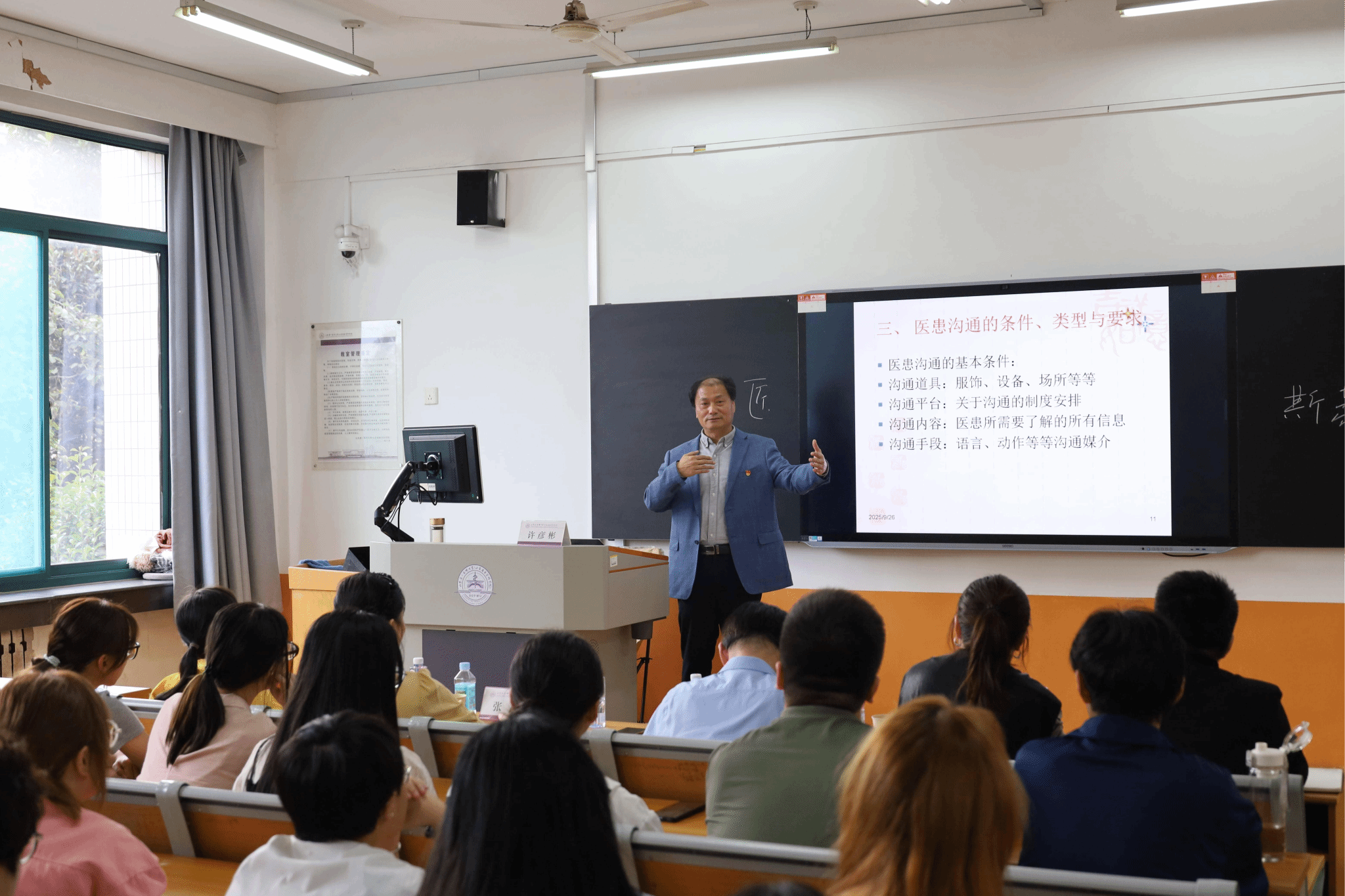 档案馆党支部书记许彦彬教授作题为《社会视觉下的医患沟通》专题讲座。许彦彬从医患沟通的意义、条件与类型、沟通设计等六个维度展开,结合真实案例,深入浅出地从社会学角度解析了医患沟通的社会学内涵与实践方法。他强调,在临床实践中应注重情感交流与伦理关怀,提升同理心与职业责任感,为同学们今后构建和谐医患关系提供了理论指导与实践路径。