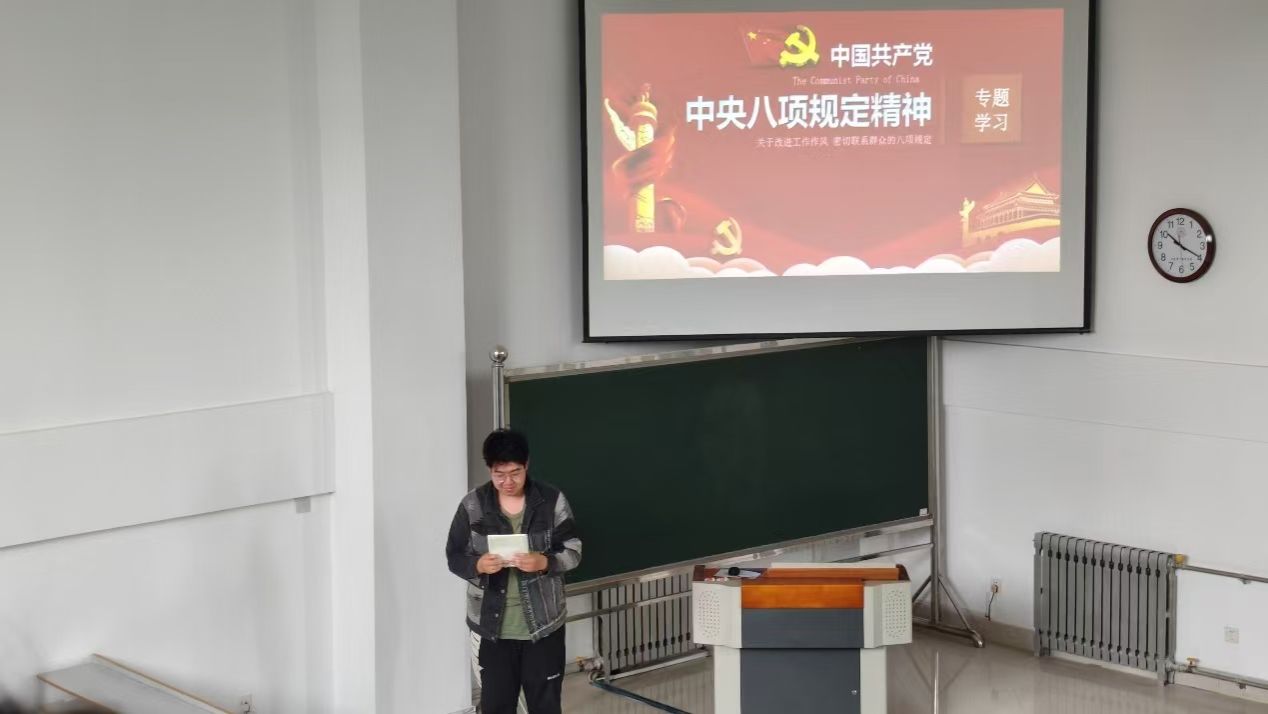 学生党员徐赫谈到,中央八项规定精神是长期坚持的重要准则。我们要从日常学习生活做起,严于律己,发挥党员先锋模范作用,带动同学们共同营造崇廉尚俭的校园文化。