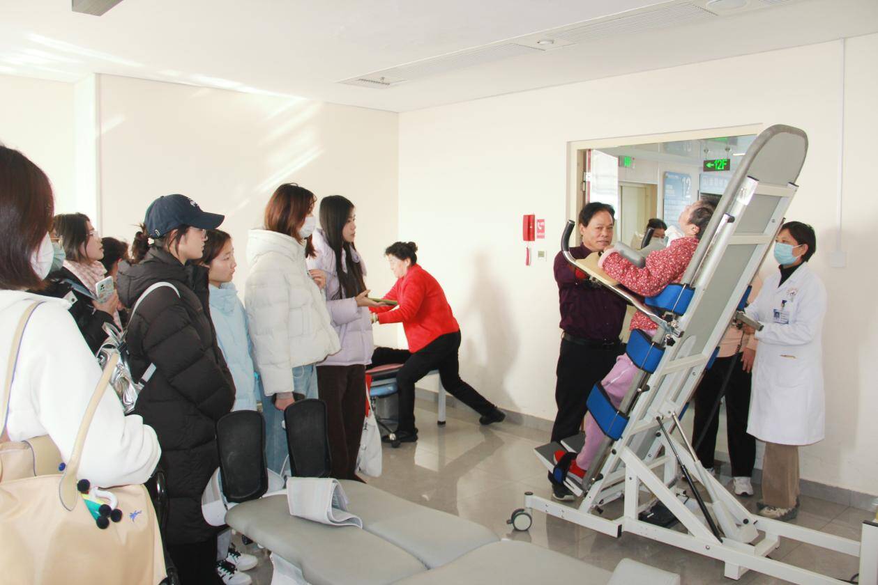 授牌签约仪式后,学院学生前往台儿庄医院康复医学科,与临床医护人员开展康复类专业知识交流,并实地参观了科室诊疗环境与设施设备,为后续开展临床实习积累了经验。