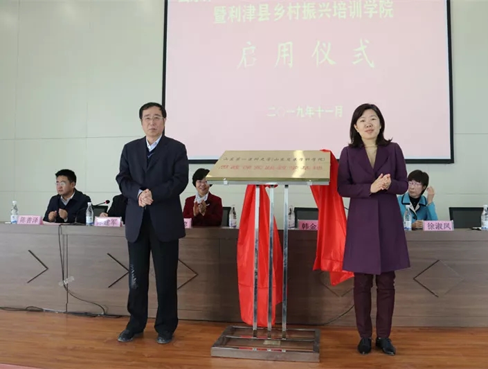仪式上,陈善泽介绍了利津县乡村振兴培训学院建设情况,学院在省派乡村振兴服务队的帮扶下筹建成立,将通过配备高端师资,打造实践化、精品化培训课程,建成链接高端师资的对外窗口、整合实训资源的一体平台和服务乡村振兴的实用课堂。