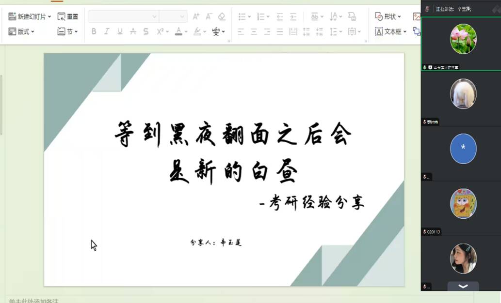 2025年考研进入倒计时,为帮助2021级考研学子优化备考策略,提升复习效率,平衡好实习、就业与考研之间的关系,近日,护理学院举办线上考研经验交流会,本次交流会邀请了2024届4名考研成功的同学做经验分享。