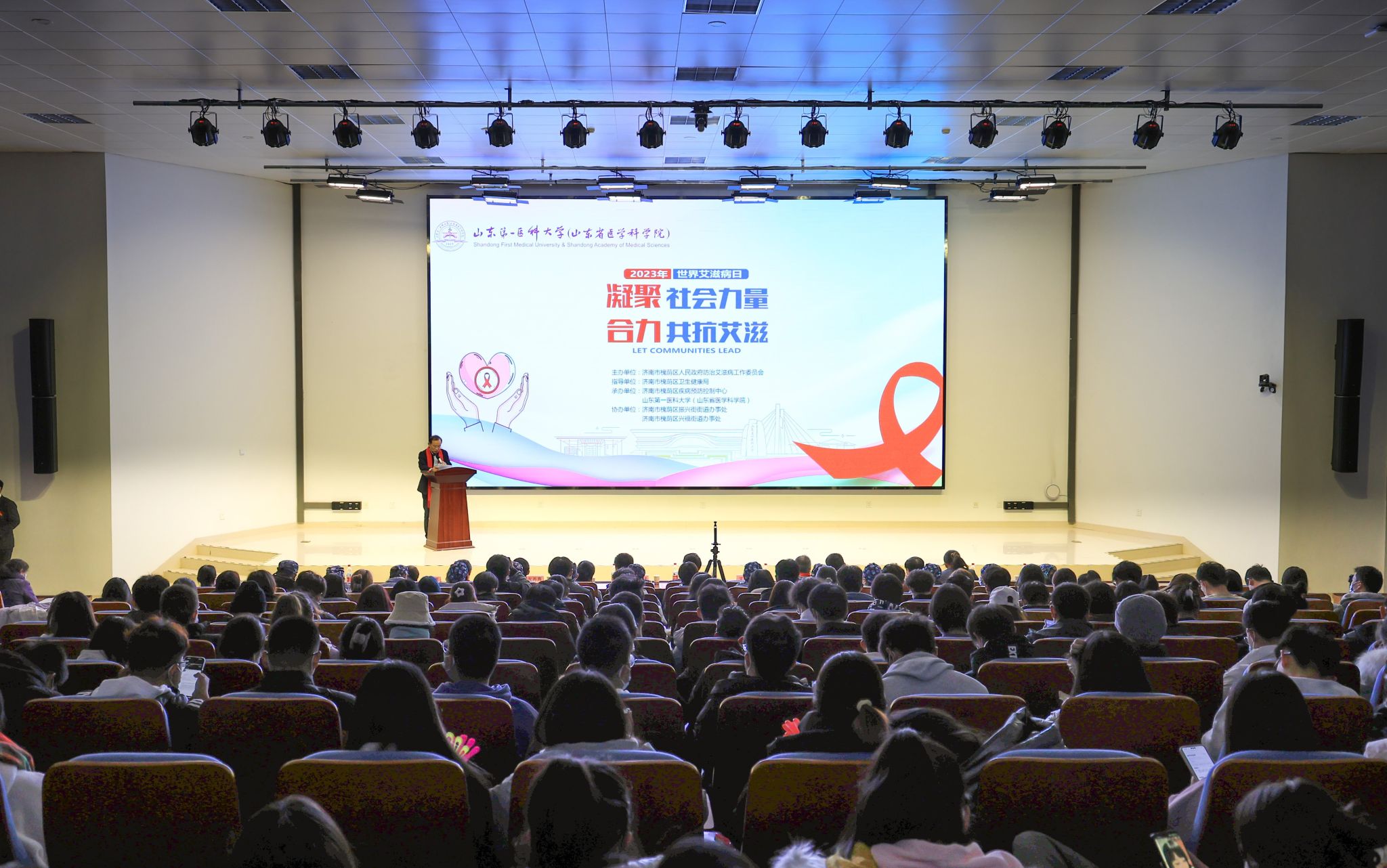 11月30日,由济南市槐荫区人民政府防治艾滋病工作委员会主办,百度开云体育app(山东省医学科学院)承办的2023年“世界艾滋病日”主题宣传活动在济南主校区举行。校(院)党委委员、副校(院)长王宇轩,济南市卫生健康委疾控处处长曹若明,槐荫区副区长付国斌出席活动。