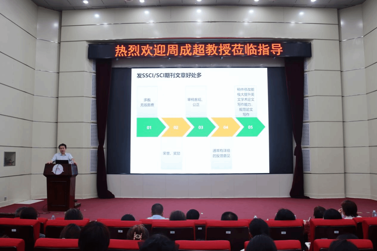 报告会上,周成超教授以问题为导向步步深入,提出“如何撰写一篇好文章?”“如何选择合适的期刊?”等同学们关注的问题,并结合卫生事业管理学科方面的知识和论文写作体会,在论文的选题、写作和发表等方面展开详细讲解,强调了论文数据分析的重要作用,选题切勿大而空,要多注重现实意义,在制作图表的过程中要注重图文结合。周教授表示,论文写作要学会讲精彩故事,对于青年学者而言,动手最重要,要尝试和国际学者交流,增强语言和数据表述能力。最后,他鼓励同学们发扬科研探索精神,努力发表ssci/sci期刊文章,做出优异的学术成果。