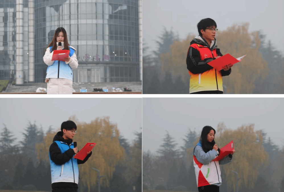 上午七时,校(院)各级志愿服务组织成员齐聚泰安校区文源广场,共话奉献初心。活动伊始,校(院)志愿服务组织代表上台发言,讲述志愿服务的经历和意义,分享志愿服务的心得和经验,通过亲身感受生动诠释“奉献、友爱、互助、进步”的志愿服务精神,号召所有志愿者在志愿服务的道路上奉献无悔青春。随后,全体志愿者郑重宣誓,彰显了服务社会的坚定决心。